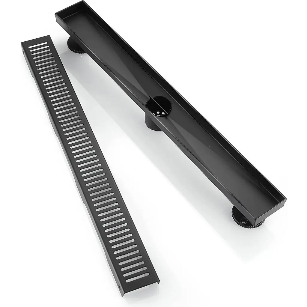 Boann 304 Stainless Steel Rectangular Linear Shower Floor Drain In Gold - 24" - Black