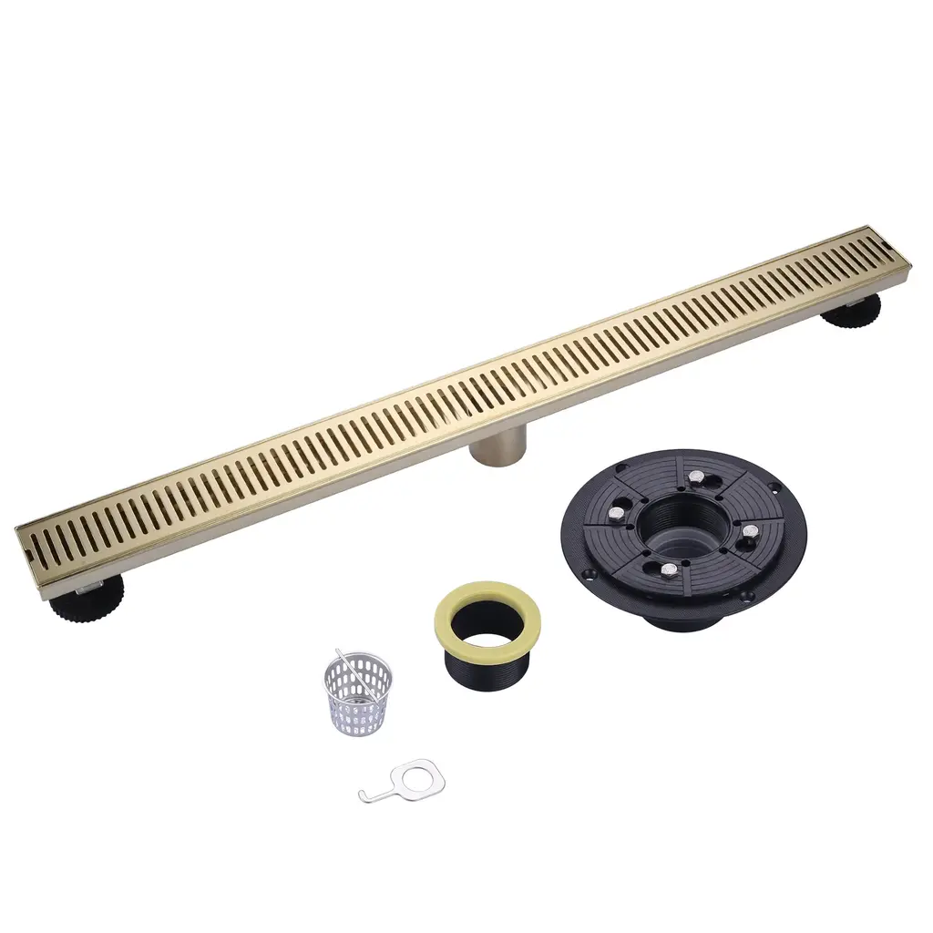 Boann 304 Stainless Steel Rectangular Linear Shower Floor Drain In Gold - 36" - Gold