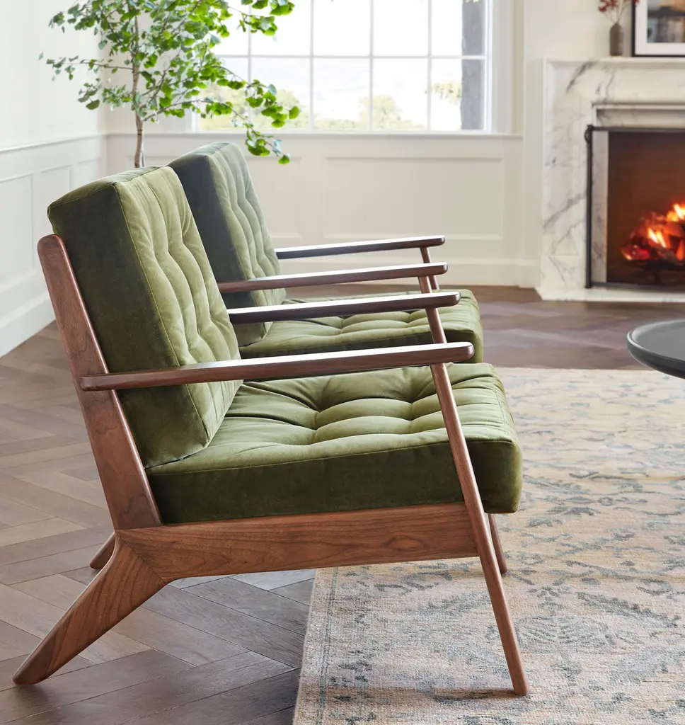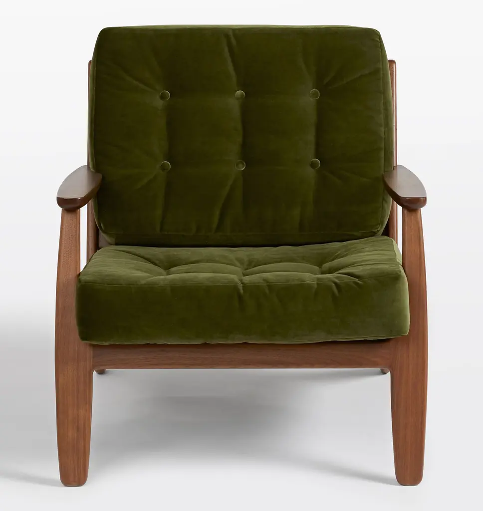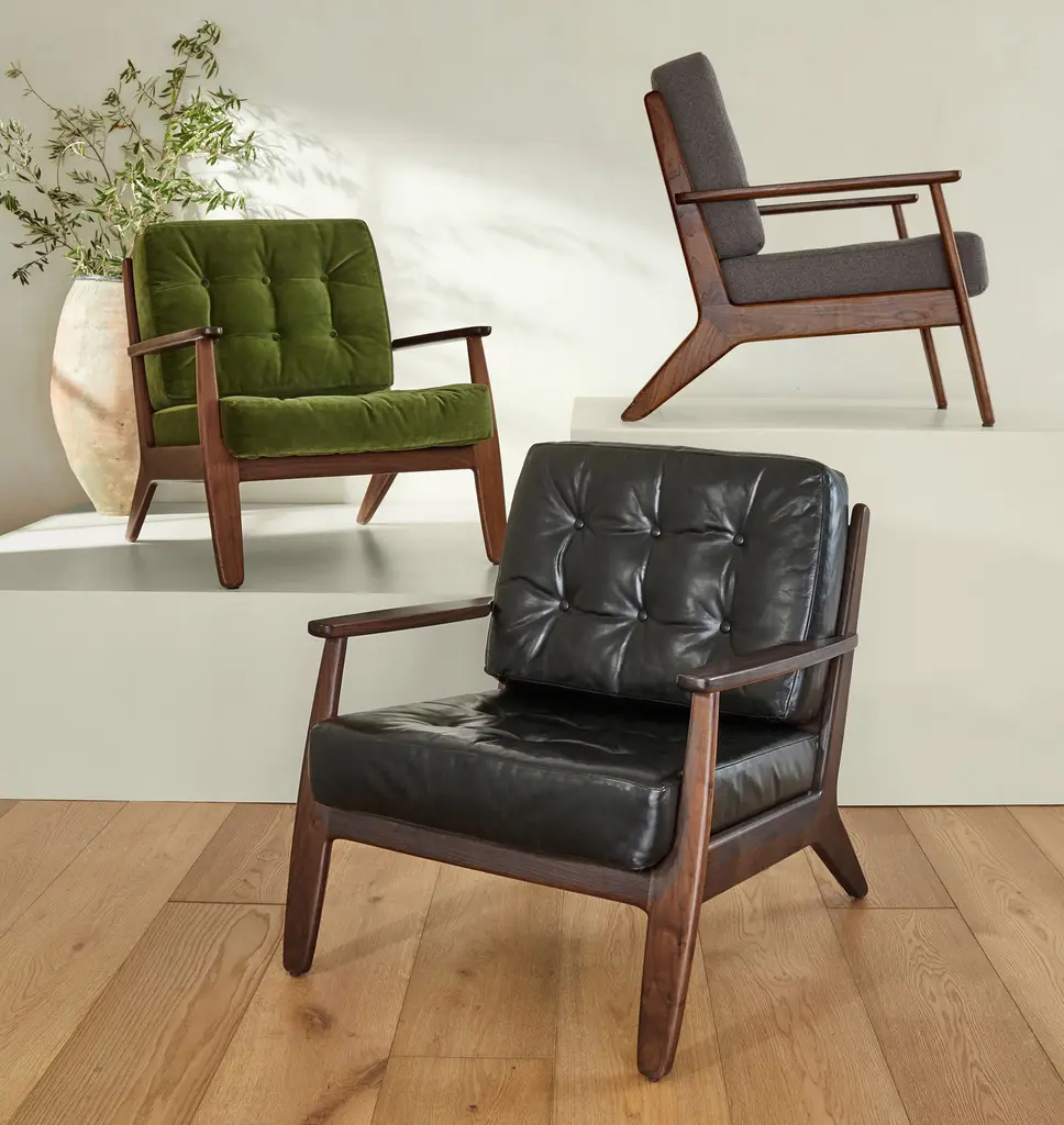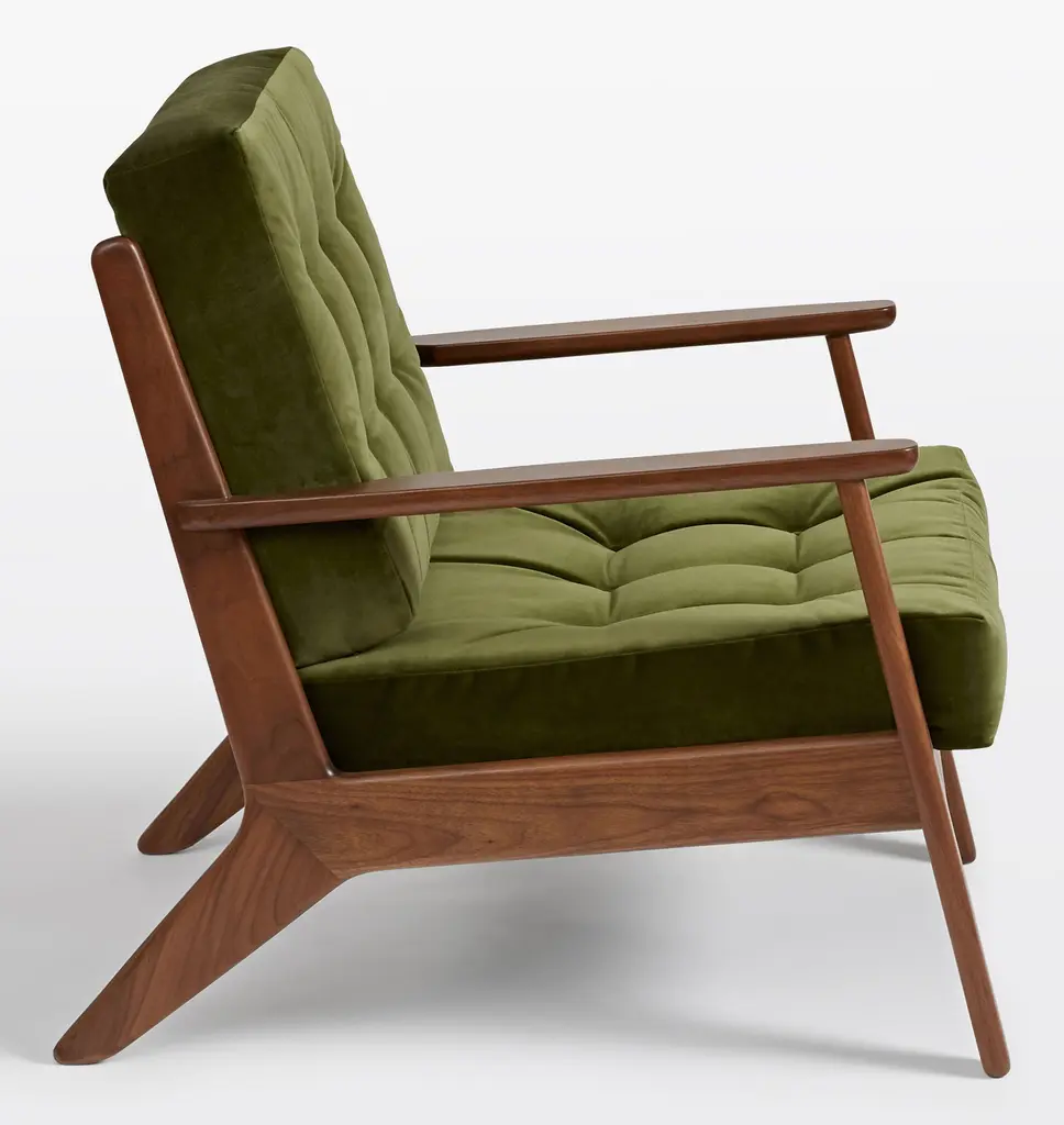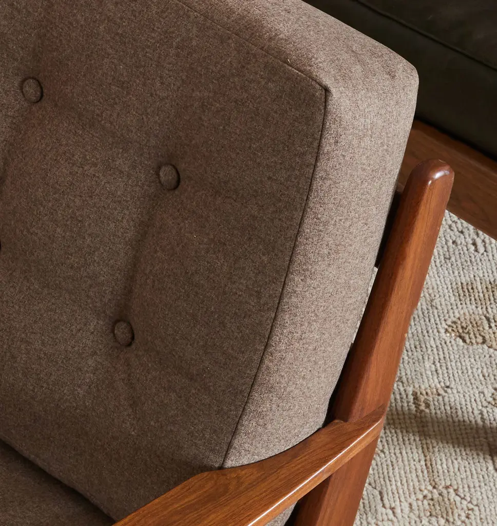 Classic with contemporary touches, our Boardman Chair captures mid-century-inspired style. Featuring a luxuriously tufted back and seat with a walnut wood frame, Boardman is available in several high-quality upholstery options, and is the perfect addition to any living space, reading nook, or home office.