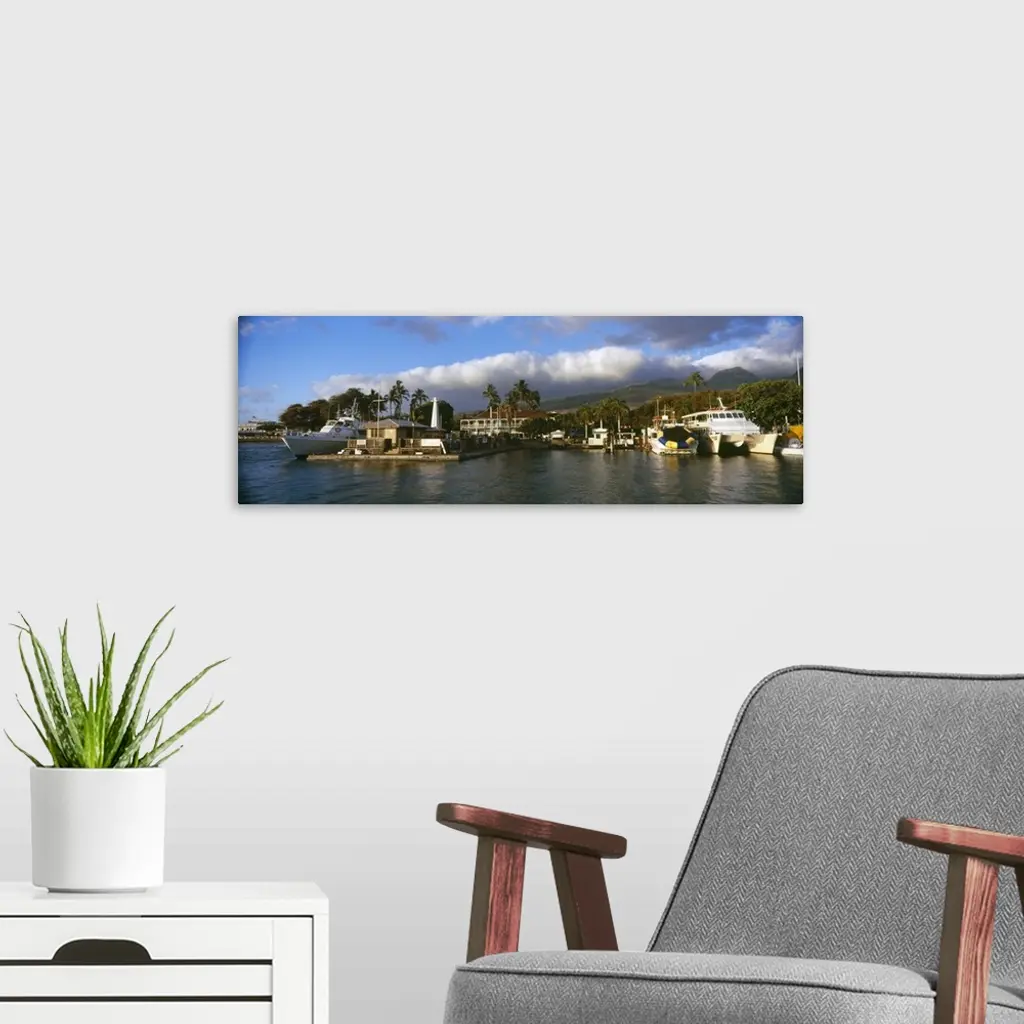 Boats at a harbor Lahaina Harbor Lahaina Maui Hawaii wall art for home and office decor. Discover canvas art prints, photos, mural, big canvas art and framed wall art in GreatBigCanvas.com's varied collections.