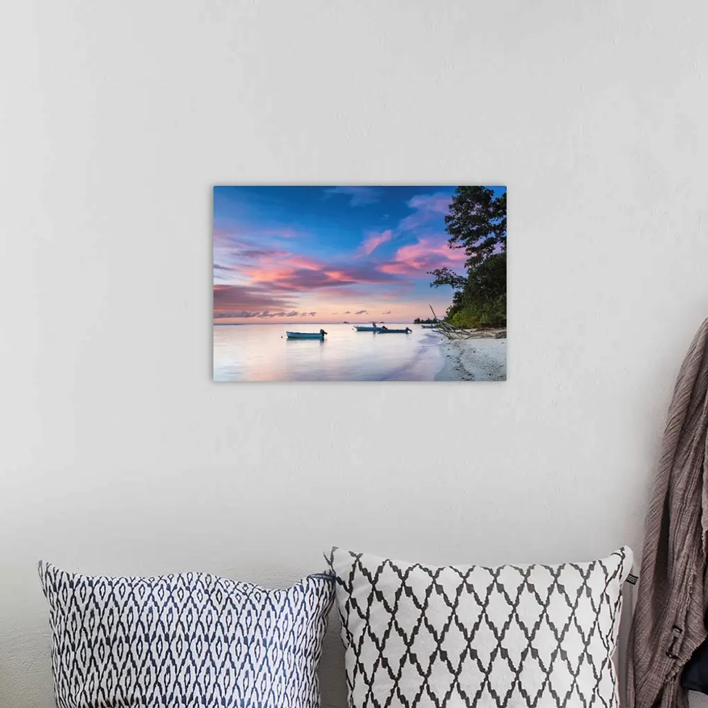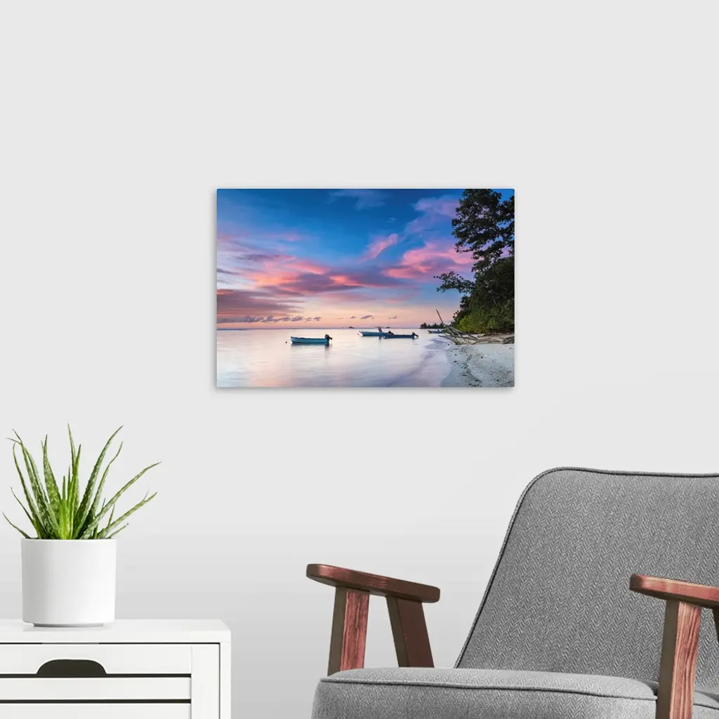 Boats At Sunset, La Digue, Seychelles