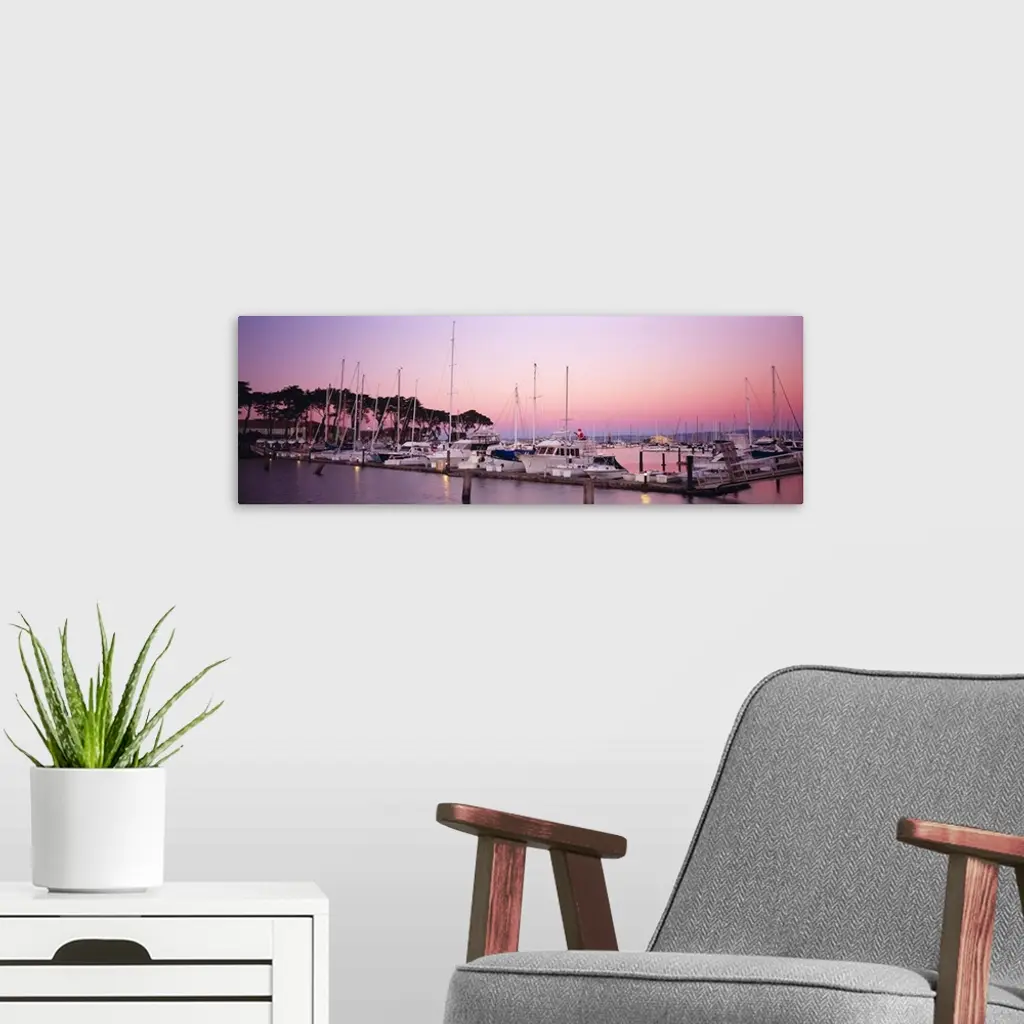 Boats docked at a harbor at dusk, Marina District, San Francisco, California wall art for home and office decor. Discover canvas art prints, photos, mural, big canvas art and framed wall art in GreatBigCanvas.com's varied collections.