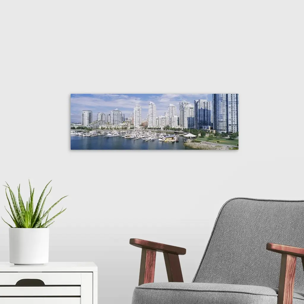 Boats docked at a harbor, False Creek, Granville Island, Vancouver, British Columbia, Canada wall art for home and office decor. Discover canvas art prints, photos, mural, big canvas art and framed wall art in GreatBigCanvas.com's varied collections.