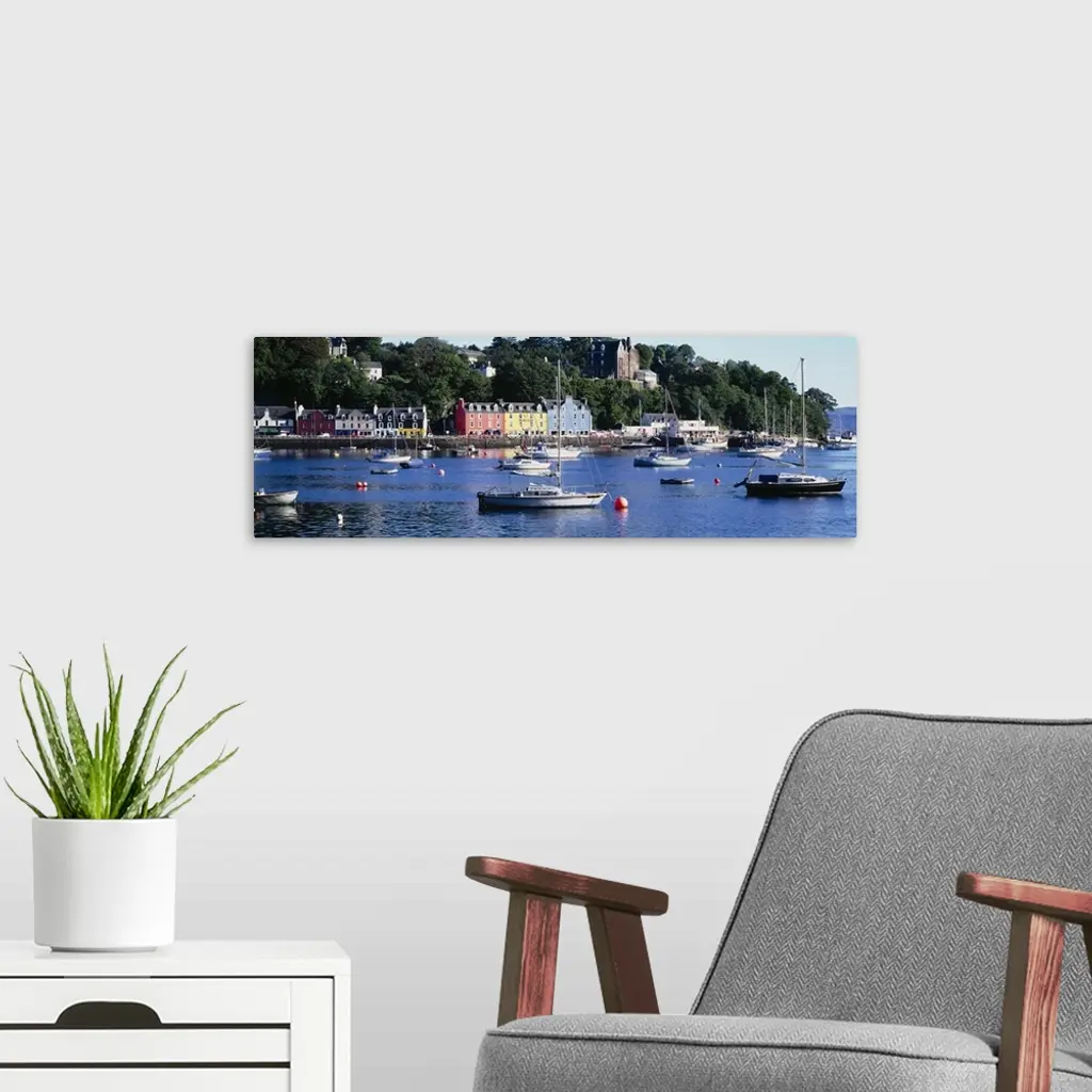 Boats docked at a harbor, Tobermory, Isle of Mull, Scotland wall art for home and office decor. Discover canvas art prints, photos, mural, big canvas art and framed wall art in GreatBigCanvas.com's varied collections.