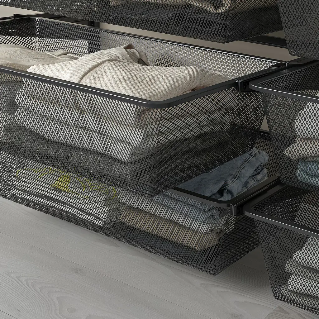 BOAXEL Mesh basket - anthracite 23 5/8x15 3/4x5 7/8 ". The dark-grey color and the matte surface create a simple and timeless expression that is easy to match with other furniture. You can pull out the mesh basket, so it’s easier to see and reach your things.