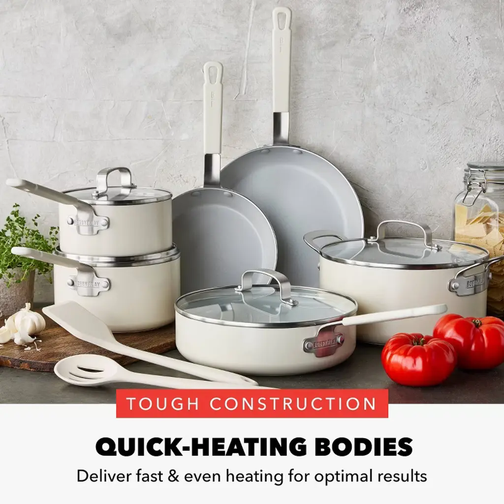 Bobby Flay 12pc Ceramic Nonstick Aluminum Cookware Set Cream