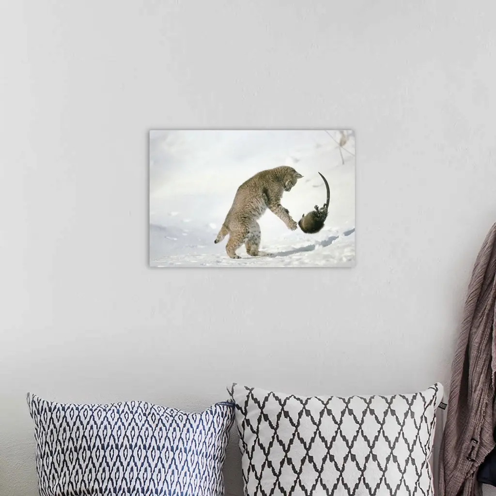 Bobcat (Lynx Rufus) Hunting Muskrat (Ondatra Zibethicus) In The Winter, Idaho