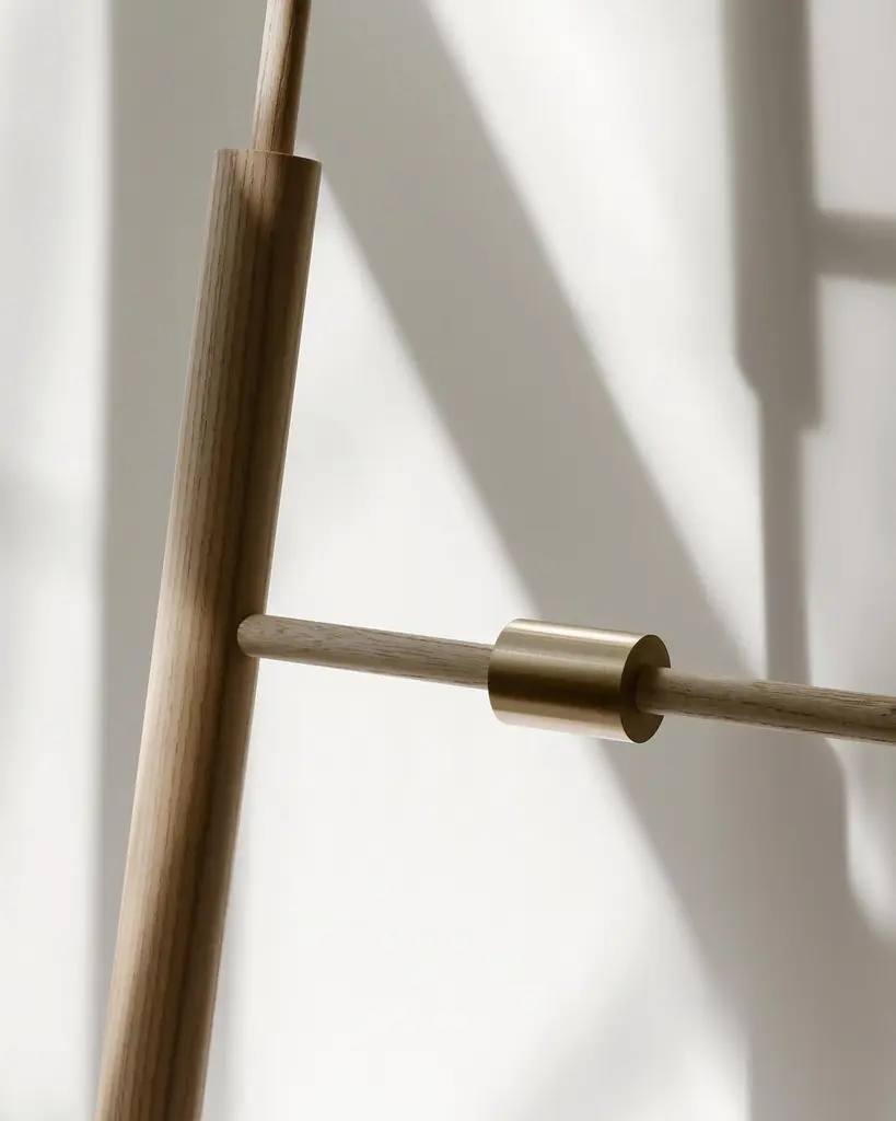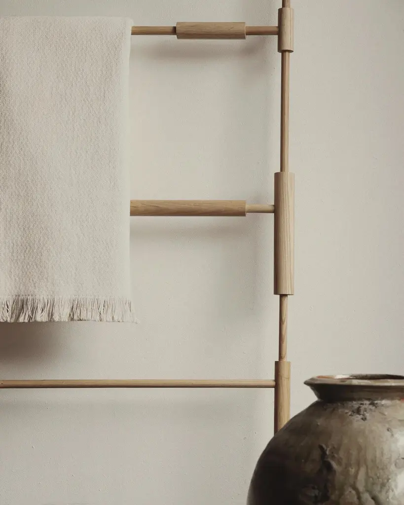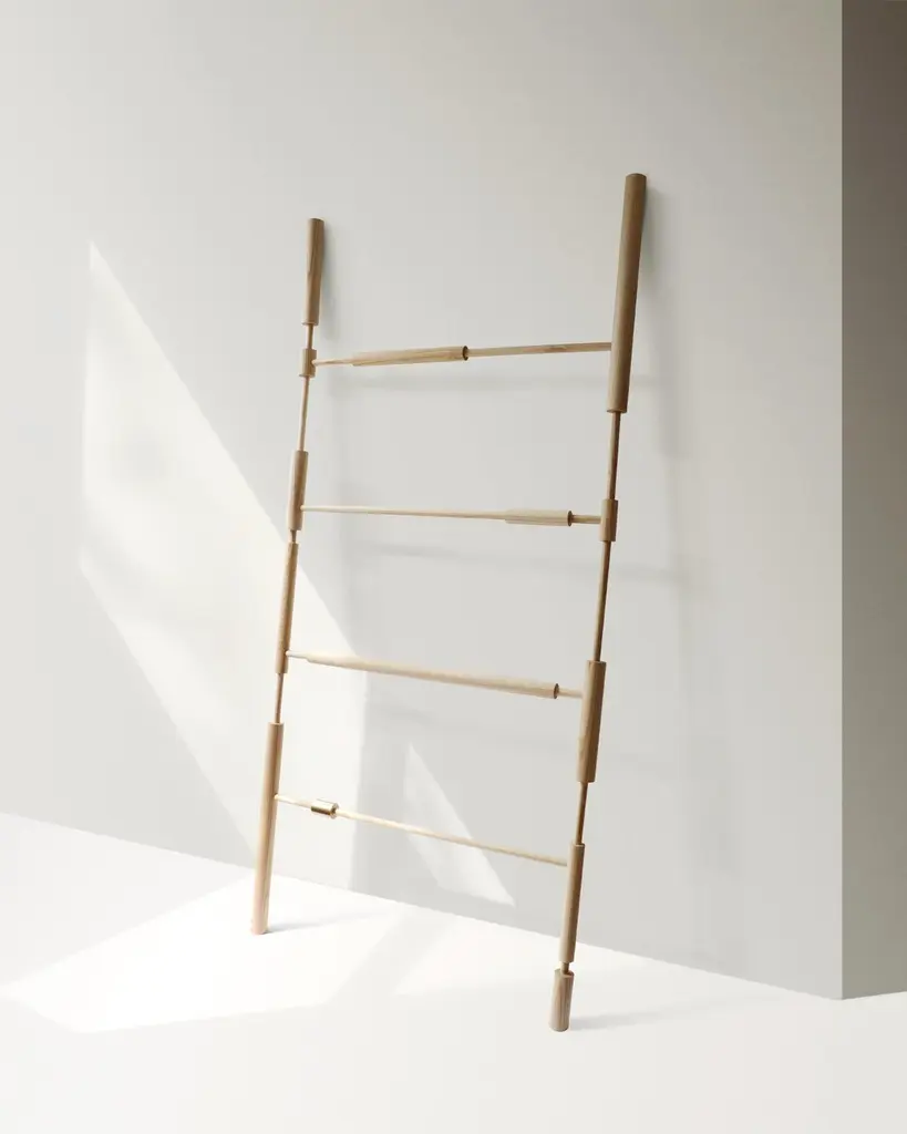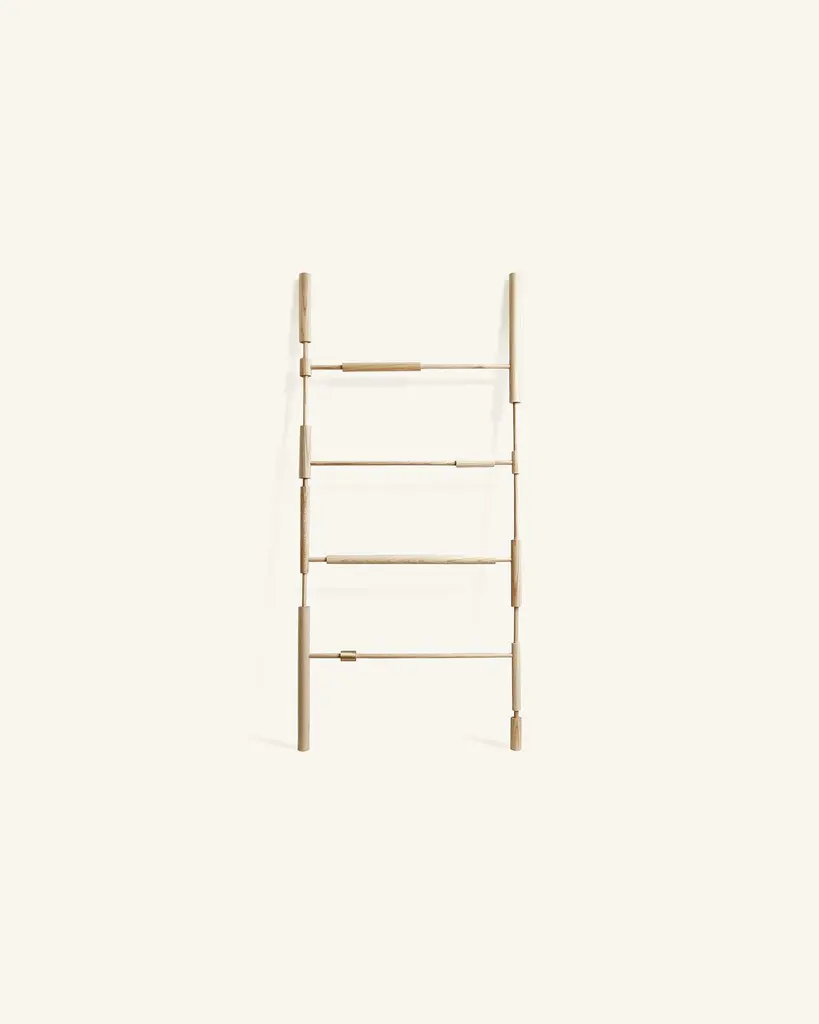 Bobines ash wood display unit by HomefolksDimensions: D 5.9 x W 87.5 x H 190cm Materials: ash wood, brassThe Bobines display unit is handmade from natural ash and solid brass. Its sculptural, fragmented line composes a playful set up to display and organise home and work essentials. Bobines is traditionally hand turned in England from native coppiced wood.London-based French duo Zoe Imber and Romain Parize founded Homefolks in 2020. Led by a narrative approach to design, the studio developed a cross-disciplinary practice that blurs the boundaries between design and art.Homefolks sculptural objects and furniture play with contrasts, scales and balance in forms with a strong emphasis on material.The collection is carefully made using traditional savoir faire. Overtime, Homefolks proudly gathered a network of skilled artisans in England, France, and Italy who all share the studio’s ethos and commitment to quality. Each object presents unique variations reflecting its artisanal nature and the gesture of the maker.Homefolks strives to create enduring objects of exceptional quality whilst writing their story in a conscious way, by adopting a small scale, made to order production and using sustainably sourced materials.