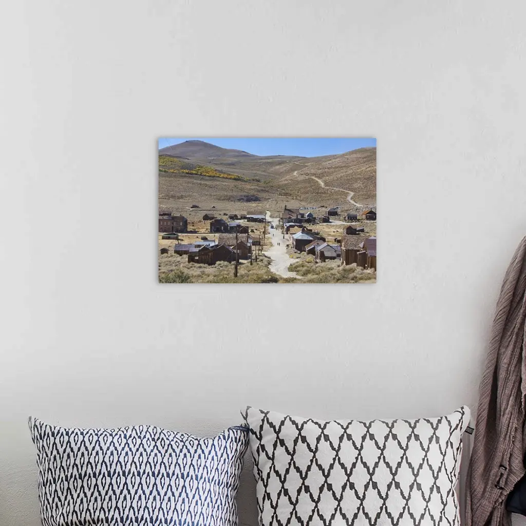 View of ghost town Bodie surrounded by the Bodie Hills, east of the Sierra Nevada mountains