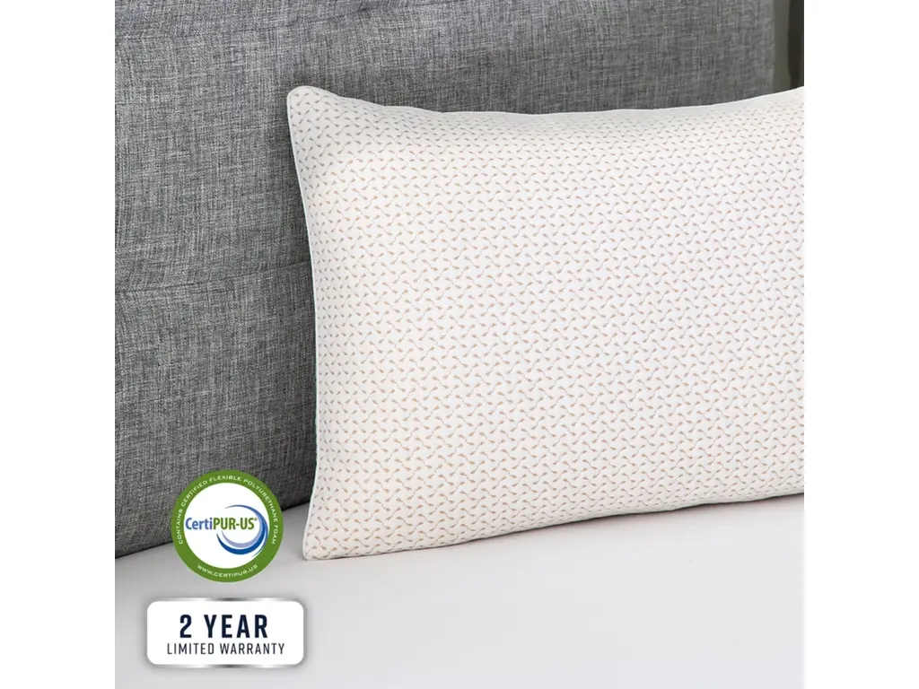 Enjoy custom support and refreshing comfort when resting on this Memory Foam Cluster Jumbo Bed Pillow with Copper Infused Cover. Each pillow is generously filled with gel-infused memory foam clusters to offer fluffability and pressure relieving support perfect for all sleep positions. The luxuriously soft circular-knit fabric cover provides an additional layer of smooth comfort and is infused with copper to help eliminate odor causing bacteria for refreshing sleep. The odor free memory foam used in this pillow meets CertiPUR-US standards for content, emissions, and durability for long lasting comfort. Each memory foam cluster pillow is backed by a 2-year limited warranty.
