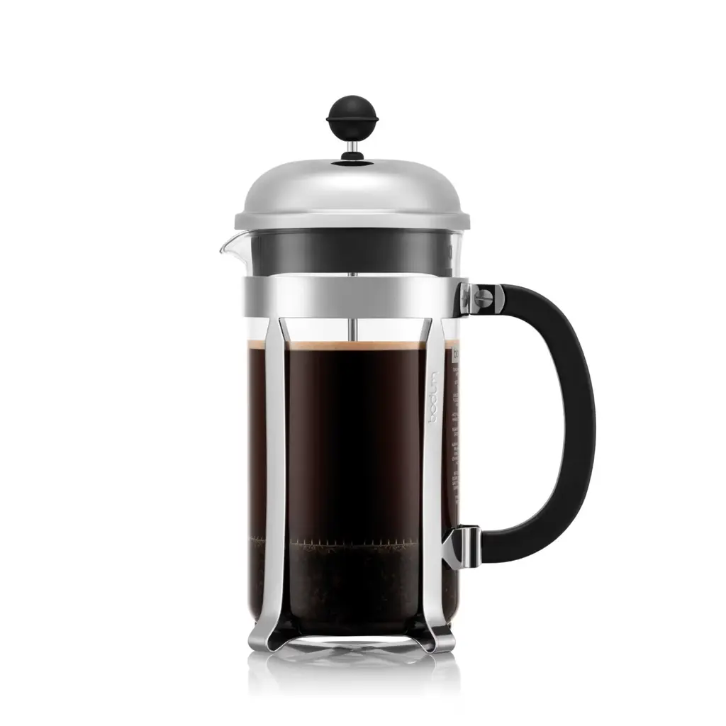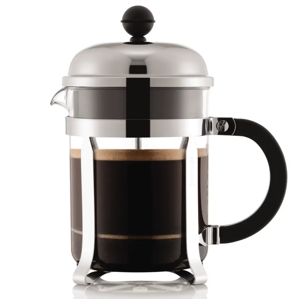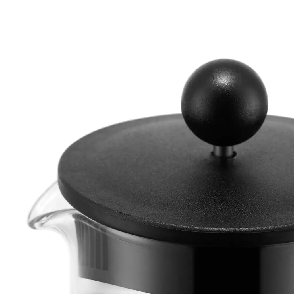 Elevate your morning routine with this modern French press. Crafted with a plastic and glass design, it features a stainless steel permanent coffee filter and a dishwasher-safe construction for easy cleanup. With a brewing capacity of 3 cups, it's perfect for residential and non-residential use.