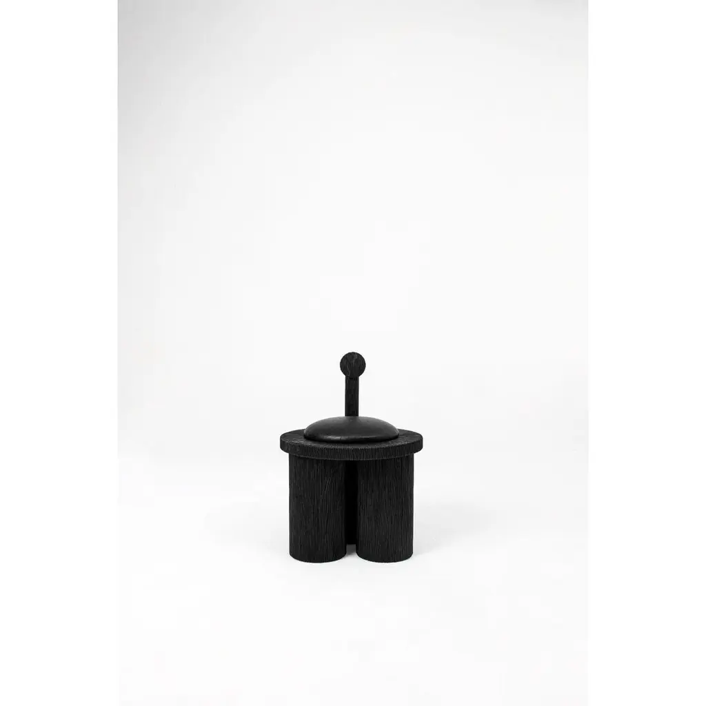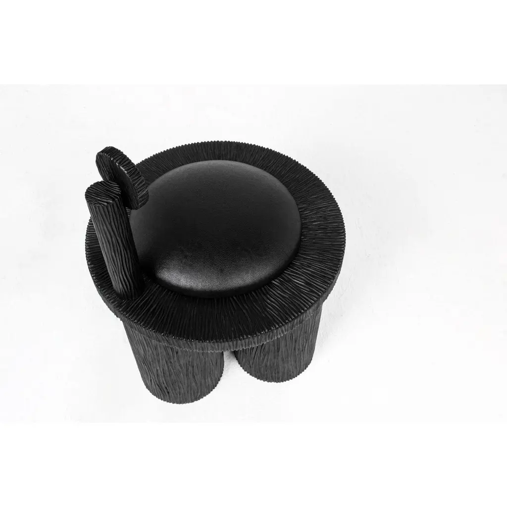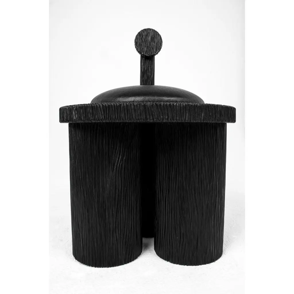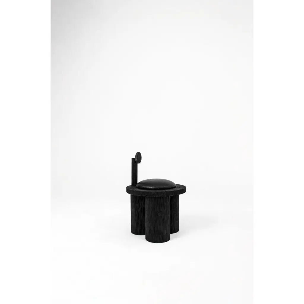Bodur I by STUDIOFERMaterials: Basswood, faux leatherDimensions: D 50, H 69 cmBodur combines the elegance of minimalism with classic handcraft traditions. An homage to noir, the basswood, and faux leather cushion are colored black to unify the 2 elements together.STUDIOFER is a creative design studio based in Istanbul, envisioning objects and spaces with genuine aesthetics to be unique and enduring.Specializing in life-enhancing furniture/interior/set design and creative direction.