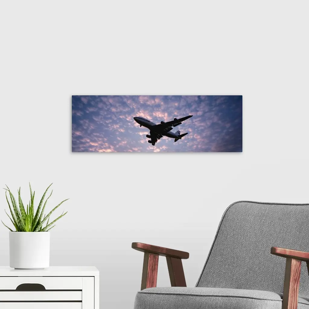 Boeing 747 Airplane In Flight Against Evening Clouds