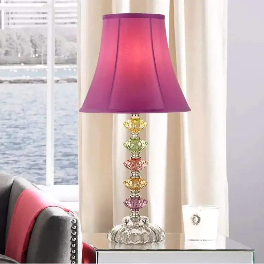 Bohemian Accent Table Lamp 21" High Multi Colored Glass Pink Shade - 9" X 21" - 9" X 21" - Multi-Color