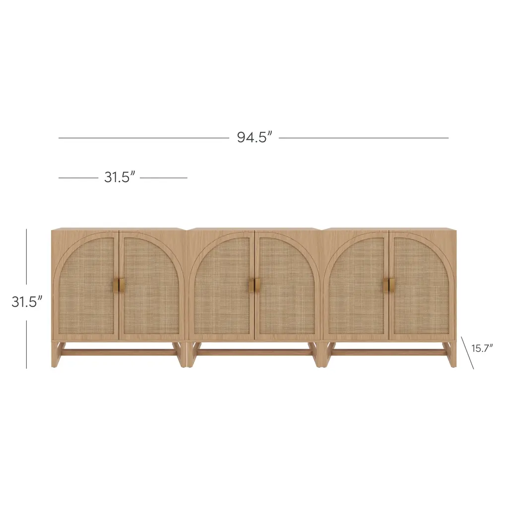Boho Arched Tv Console Credenza Raw Oak (Set Of 3)