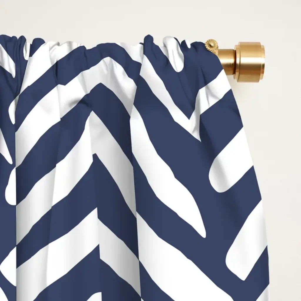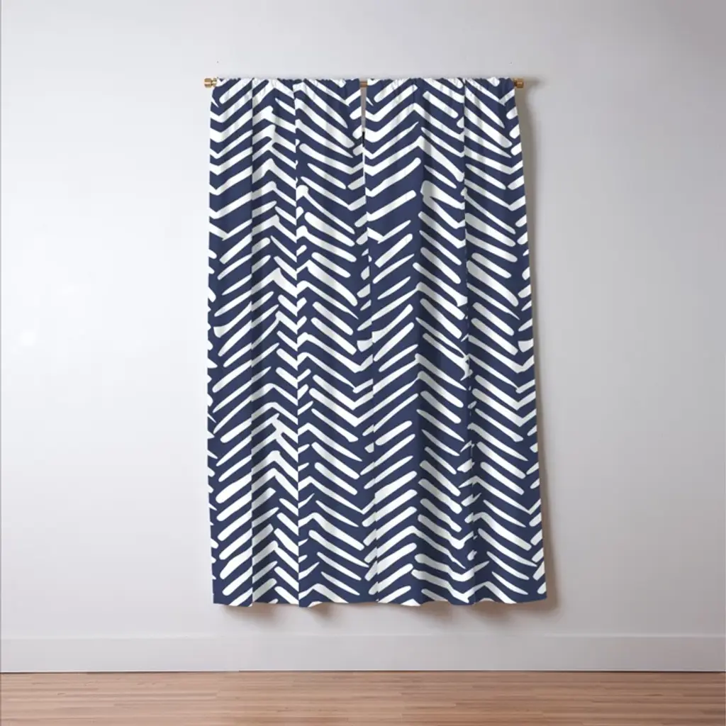 Boho Herringbone Pattern, Navy Blue And White Curtain