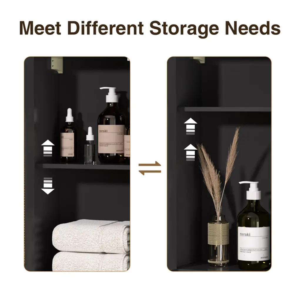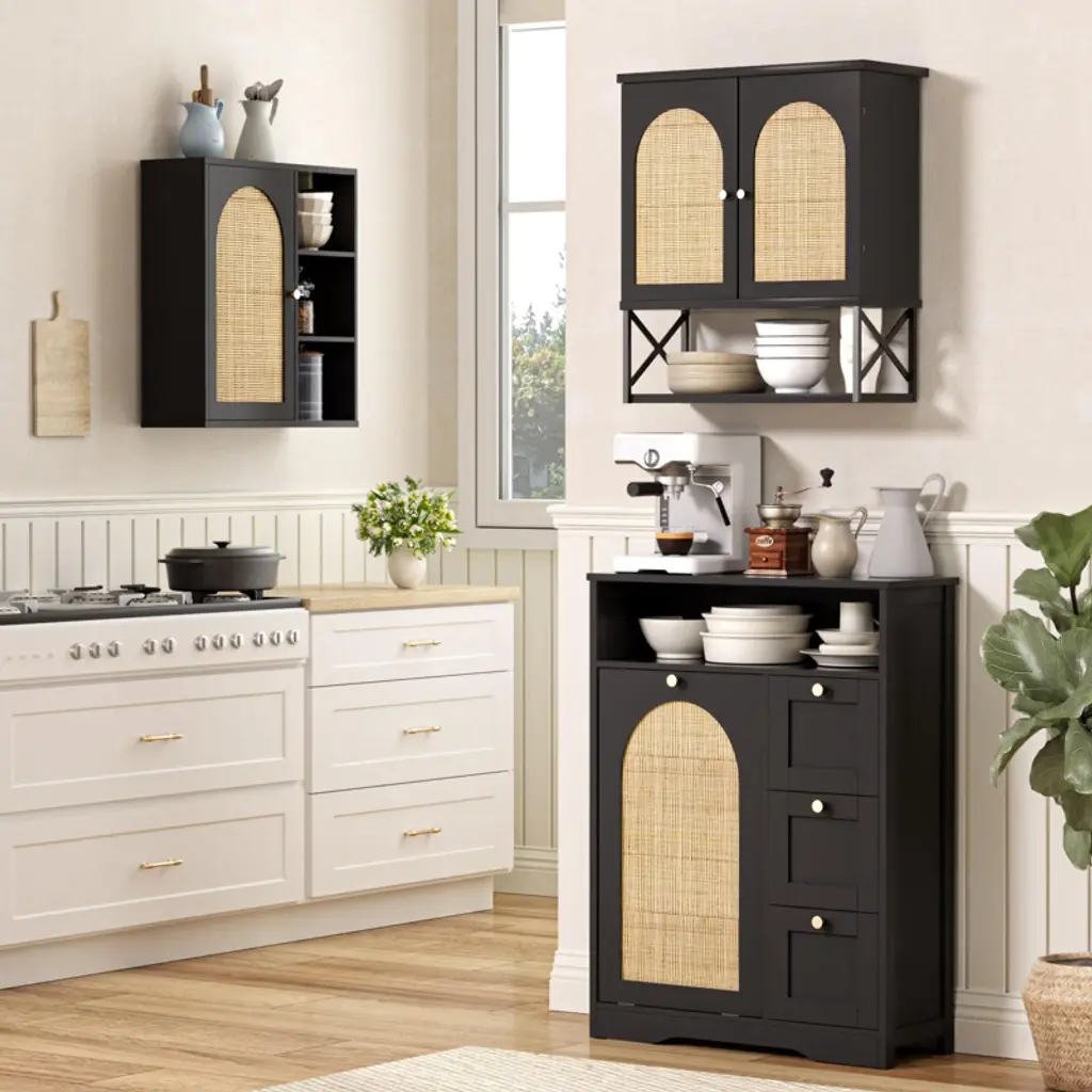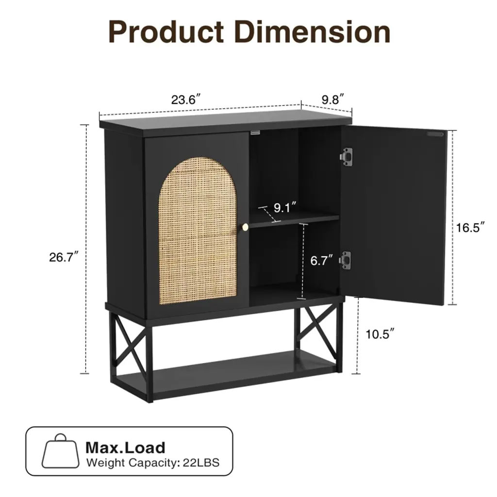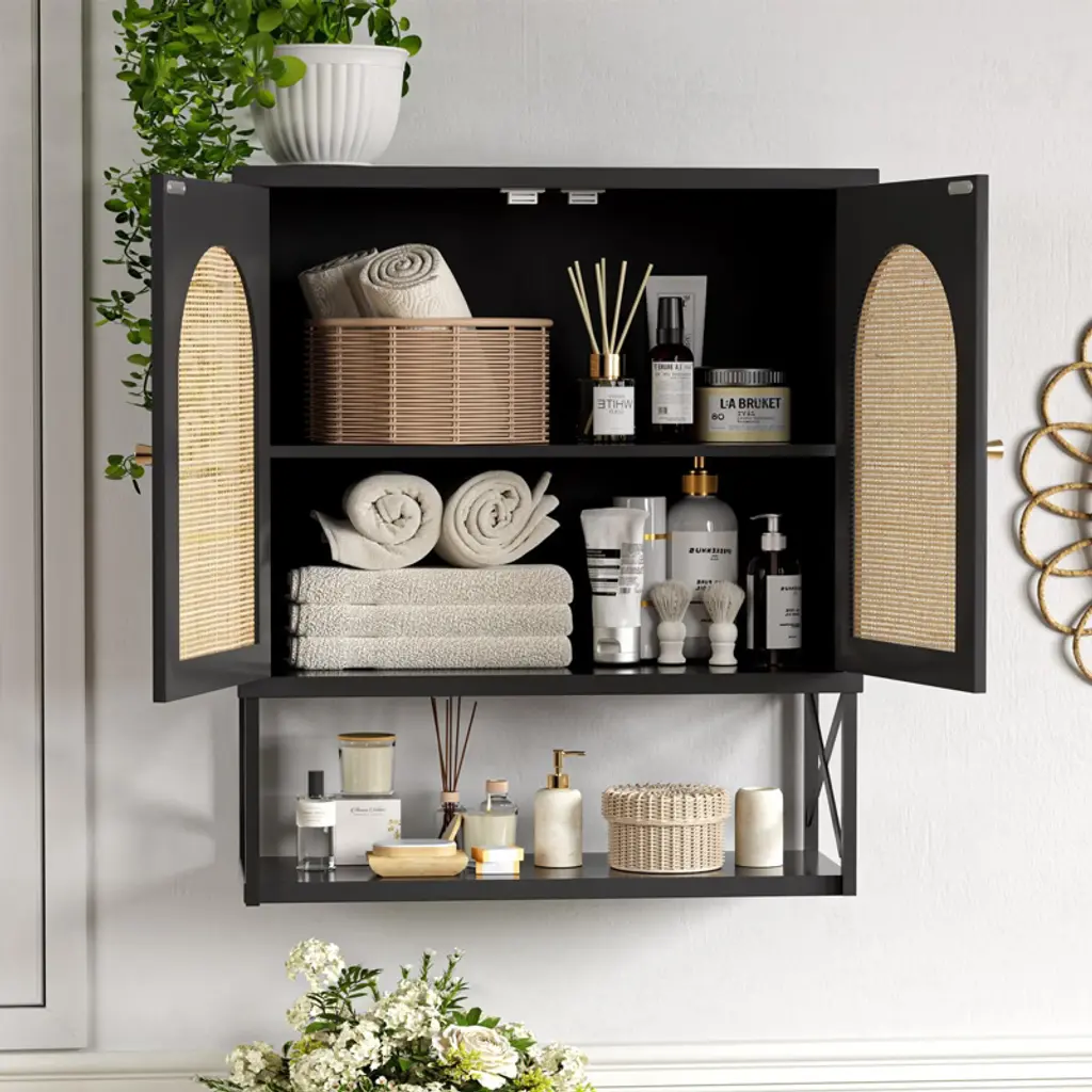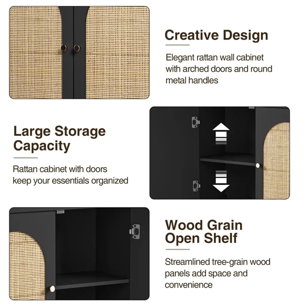 Boho Wall Mounted Storage Cabinet With Double Doors & Adjustable Shelves, Black