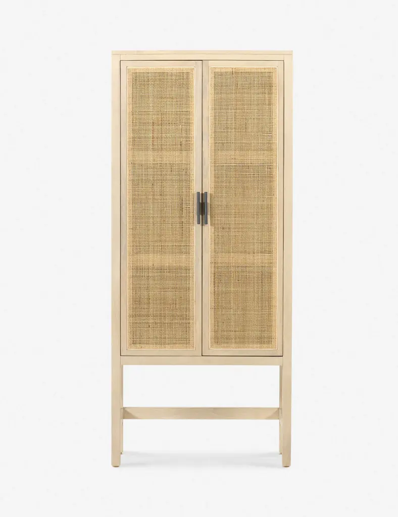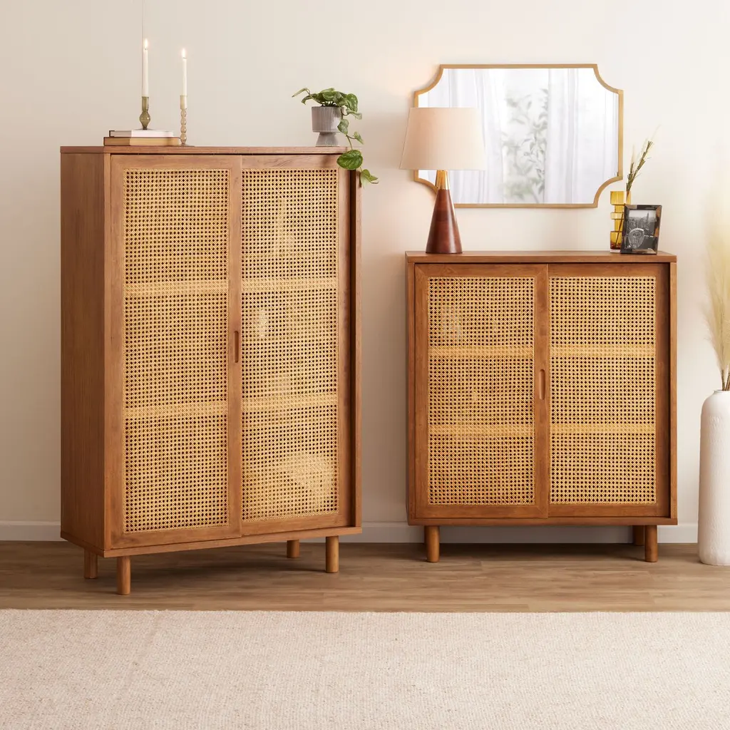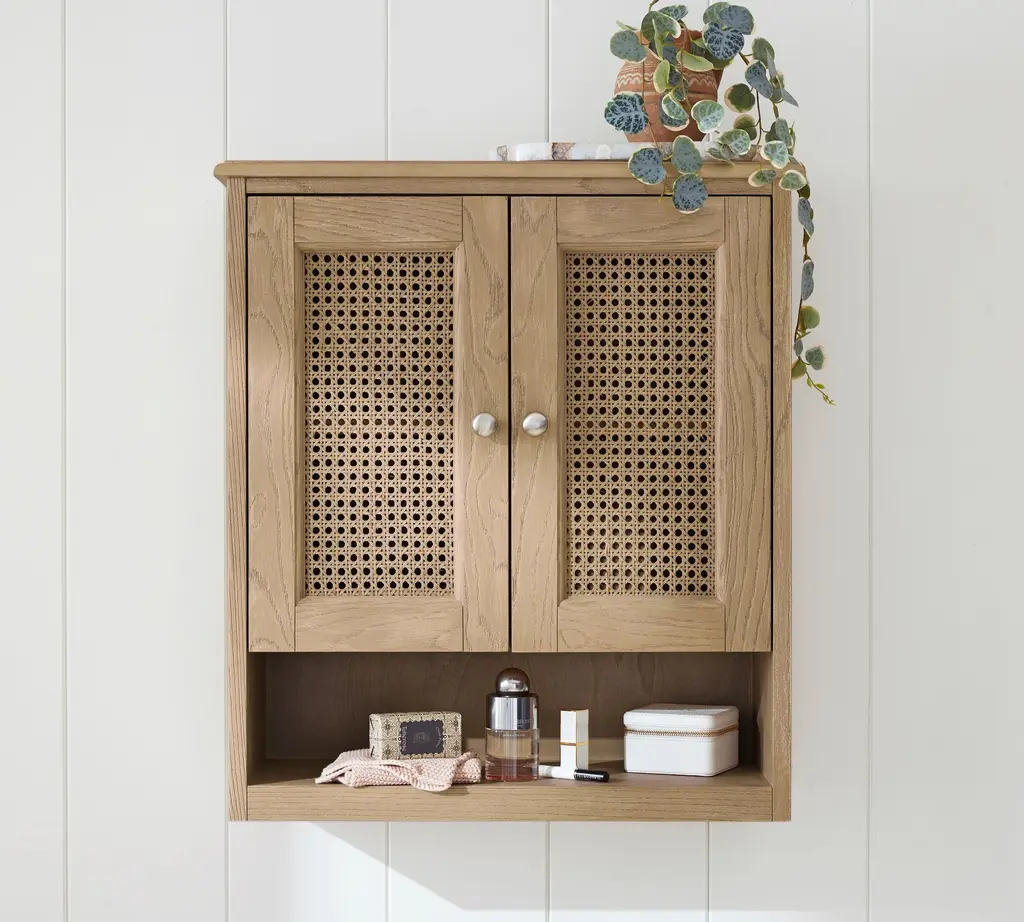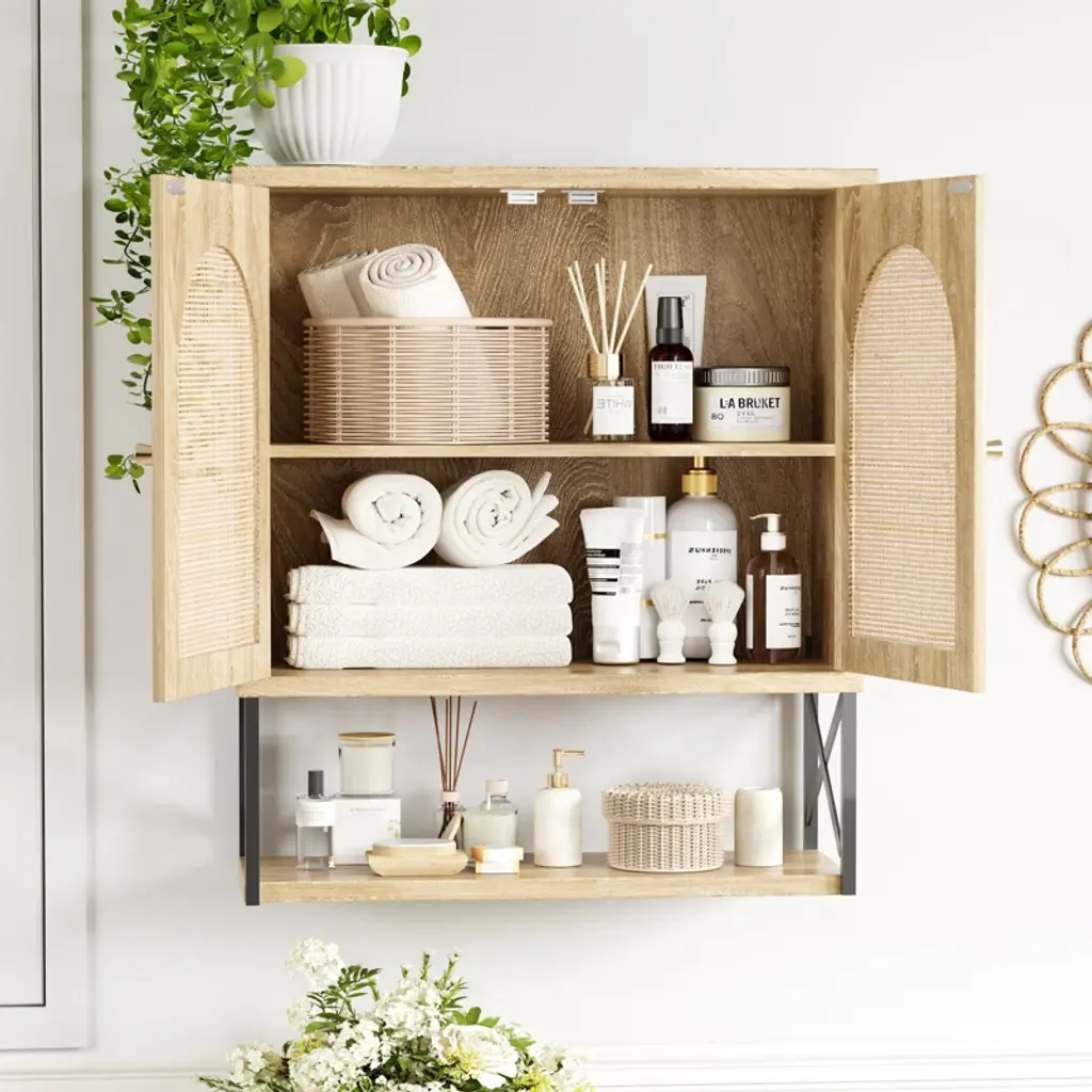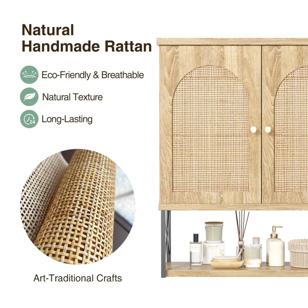 Boho Wall Mounted Storage Cabinet With Double Doors & Adjustable Shelves, Natural