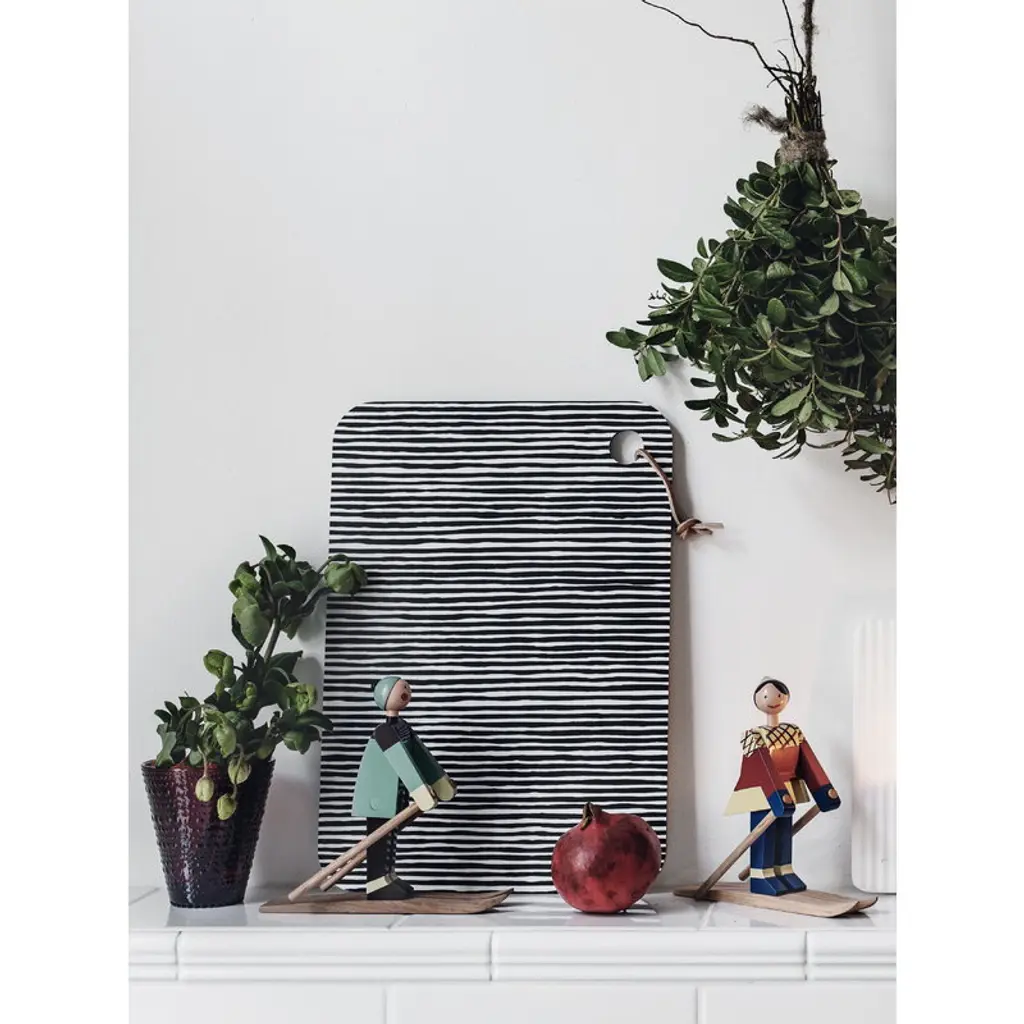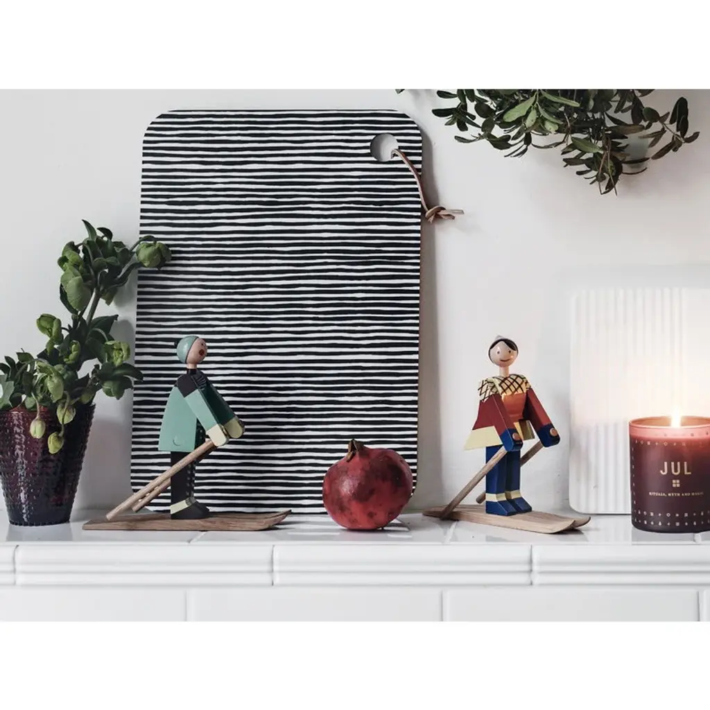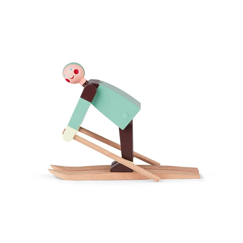 Datti and Boje are cheerful skiing wooden dolls that Kay Bojesen designed in the 1940’s. The red-cheeked characters were named after his family members – his son Otto was called Boje, and Datti was the nickname of his daughter-in-law Ruth. The dolls are made of beech and feature skis, skiing poles and outfits painted with vibrant colors.