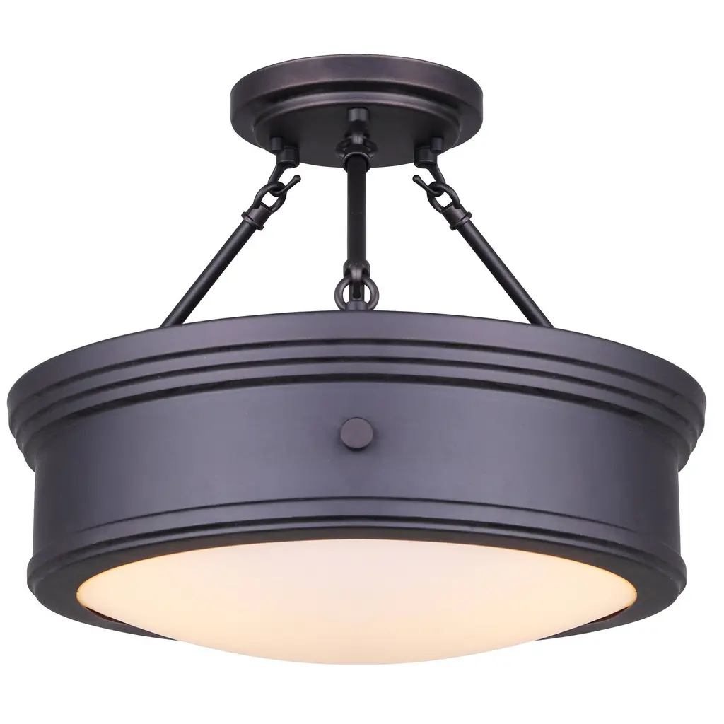 Upgrade your home with the Boku 3-Light Semi-Flush Mount Ceiling Light, a stunning blend of classic and modern design. Featuring an oil rubbed bronze finish and a flat opal glass shade, this fixture brings elegance and functionality to any space. The three-light design provides soft, diffused illumination, making it perfect for hallways, bedrooms, kitchens, and entryways. Measuring 15 inches wide and 12 inches high, this ceiling light offers a stylish yet compact design that complements industrial, transitional, and farmhouse interiors. Installation is quick and easy, with all necessary mounting hardware included. Compatible with three 100W E26 bulbs (not included), this semi-flush mount light allows you to customize brightness and warmth to suit your space. Elevate your home with this versatile and timeless lighting solution.Timeless and Elegant Design: The Boku 3-light semi-flush mount fixture features an oil rubbed bronze finish with a flat opal glass shade blending classic and modern styles for a versatile lighting solution.Soft and Diffused Illumination: The frosted flat opal glass shade creates a warm inviting glow while reducing glare making it an ideal lighting choice for hallways bedrooms kitchens entryways and other interior spaces.Compact and Stylish Size: Measuring 15 inches wide and 12 inches high this ceiling light fits seamlessly into various rooms providing ample illumination without overpowering the space.Easy Installation with Included Hardware: Designed for quick setup this semi-flush mount fixture comes with all necessary mounting hardware allowing for a hassle free installation in any home or office.Compatible with Standard Bulbs: Supports three 100W E26 bulbs not included giving you the flexibility to choose warm or cool lighting to match your home’s ambiance and design preference.