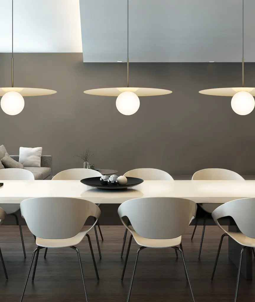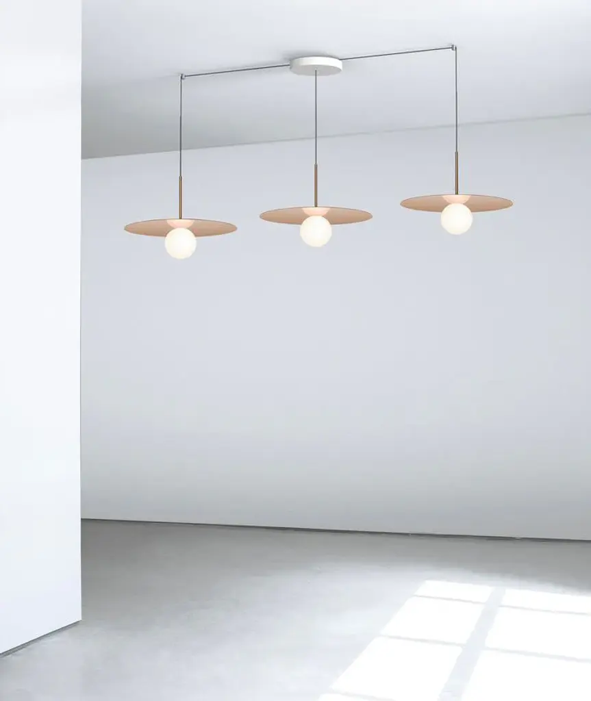 Bola’s elegant reflective disc and globe design can be suspended in a variety of custom arrangements in both round and linear configurations. With Bola Multi-Light, up to 9 lamps can be grouped together in a variety of mixed disc sizes to form stunning luminaire displays. Both size and shape of the grouping is controlled by lamp quantity and positioning relative to the Multi-Light canopy. Swag mounts are provided to extend the lights out into space along with an ample cord length of 10’ to offer a wide array of unique solutions. *Please note: this item is for the canopies only. Bola Disc lamps can be purchased here.