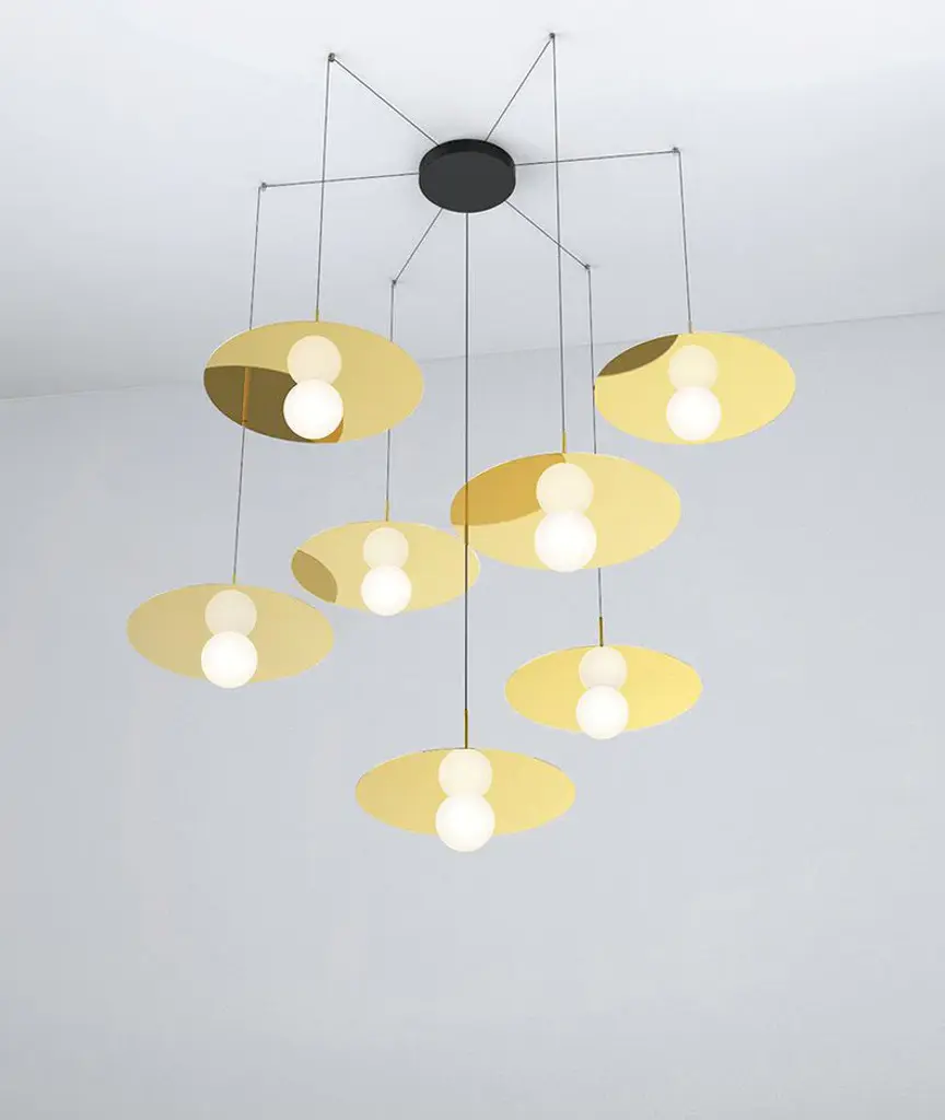 Bola’s elegant reflective disc and globe design can be suspended in a variety of custom arrangements in both round and linear configurations. With Bola Multi-Light, up to 9 lamps can be grouped together in a variety of mixed disc sizes to form stunning luminaire displays. Both size and shape of the grouping is controlled by lamp quantity and positioning relative to the Multi-Light canopy. Swag mounts are provided to extend the lights out into space along with an ample cord length of 10’ to offer a wide array of unique solutions. *Please note: this item is for the canopies only. Bola Disc lamps can be purchased here.