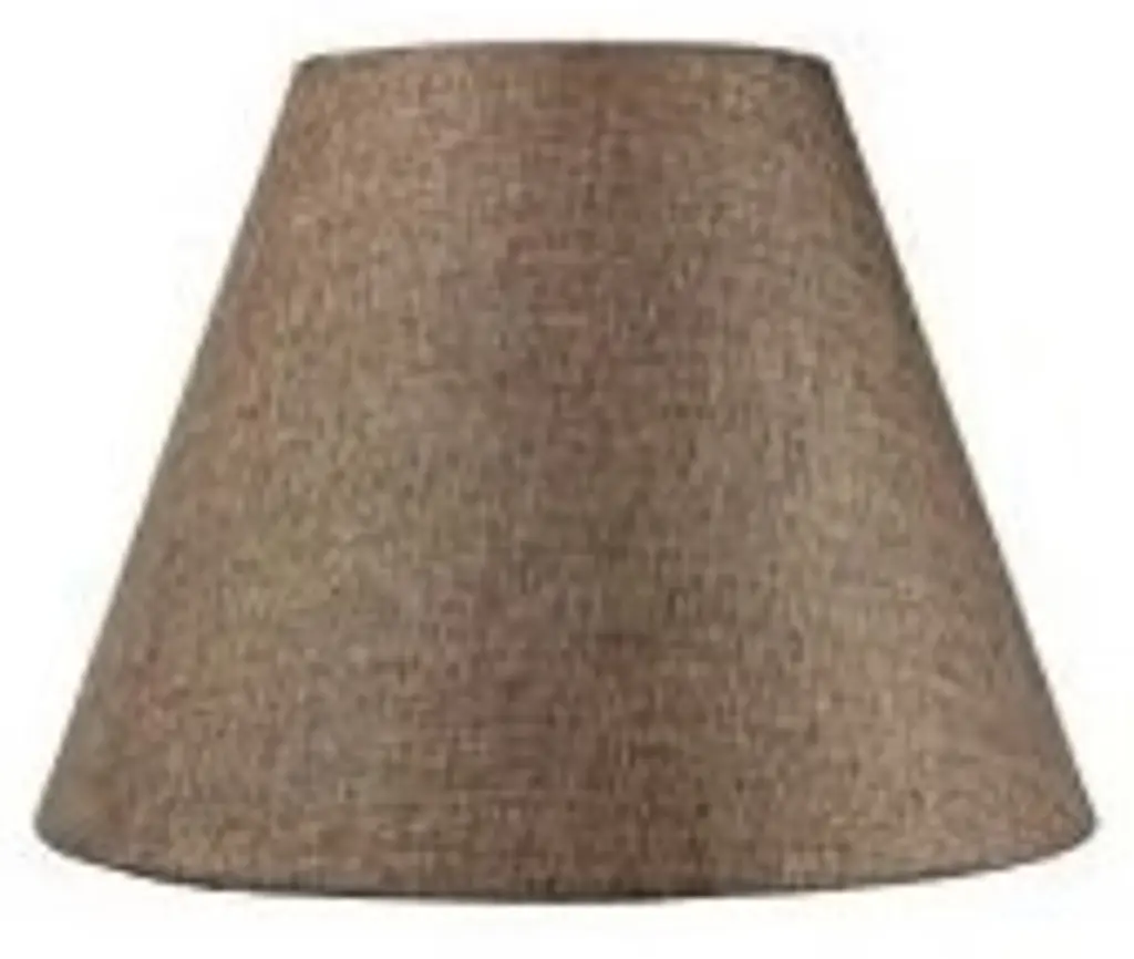 Home Concept Signature Shades feature the finest premium burlap fabric. Durable burlap fabric  means your new lampshade will last for years. It wont get brittle from smoke or sunlight like less expensive shades. Heavy brass and steel frames means your shades can withstand abuse from kids and pets. It''s a difference you can feel when you lift it. Chocolate Burlap Fabric Beige Fabric Liner; Includes Washer with 1 drop, design to sit atop of your lamp Top shelf empire hardback lampshade, found in better lighting showrooms. Durable Hotel quality shade. 8 Top x 16 Bottom x 12 Slant Height Height is measured on the slant in a straight line, it is not the vertical height Fits best with a 10 harp.