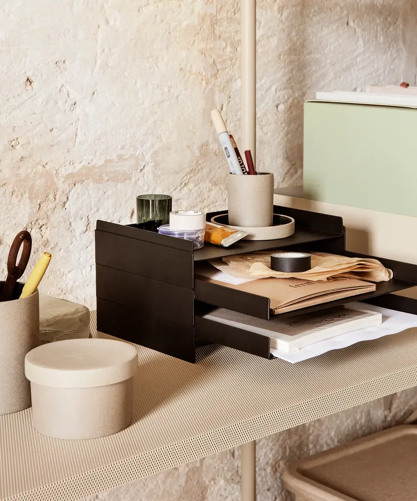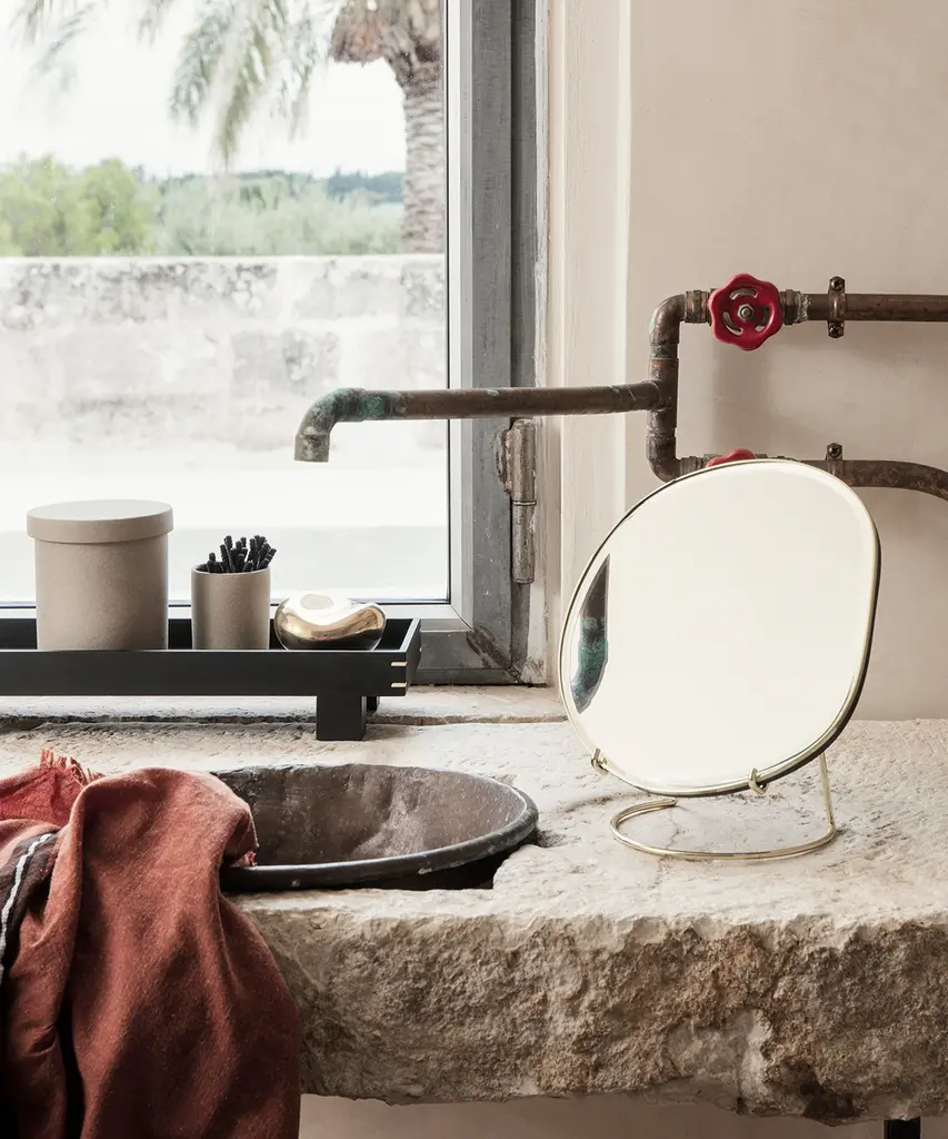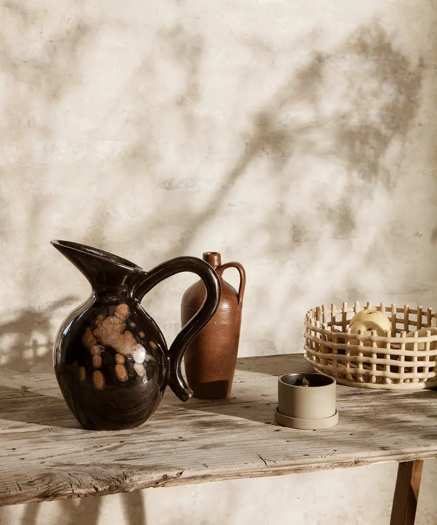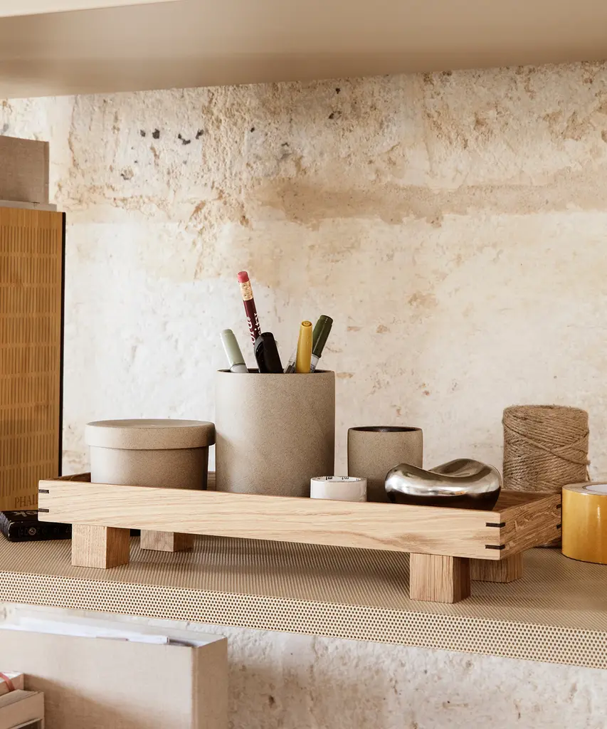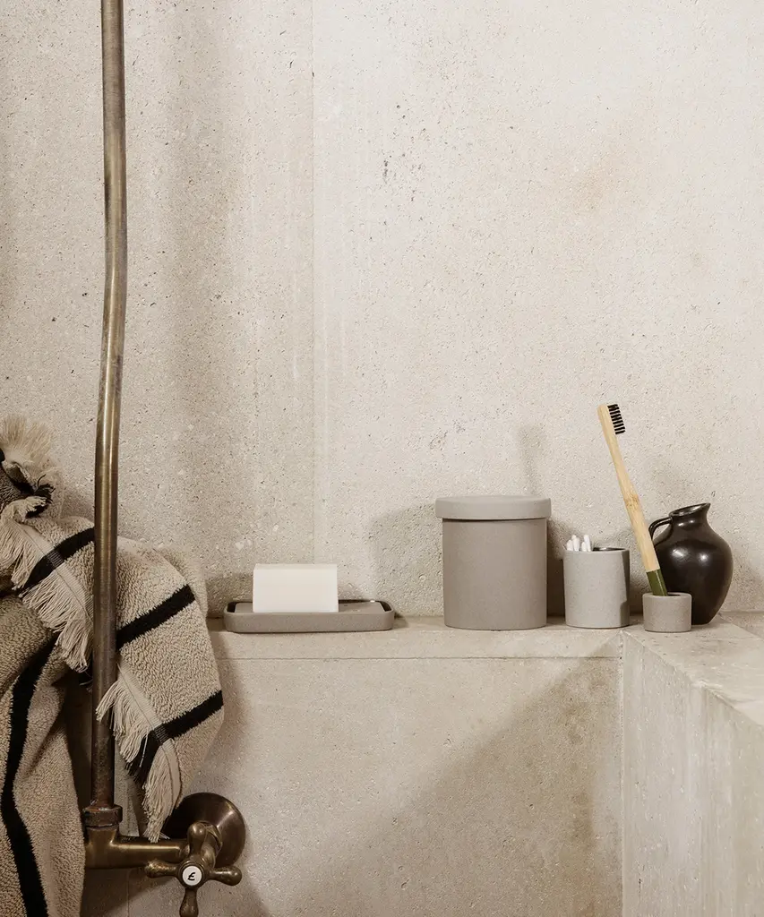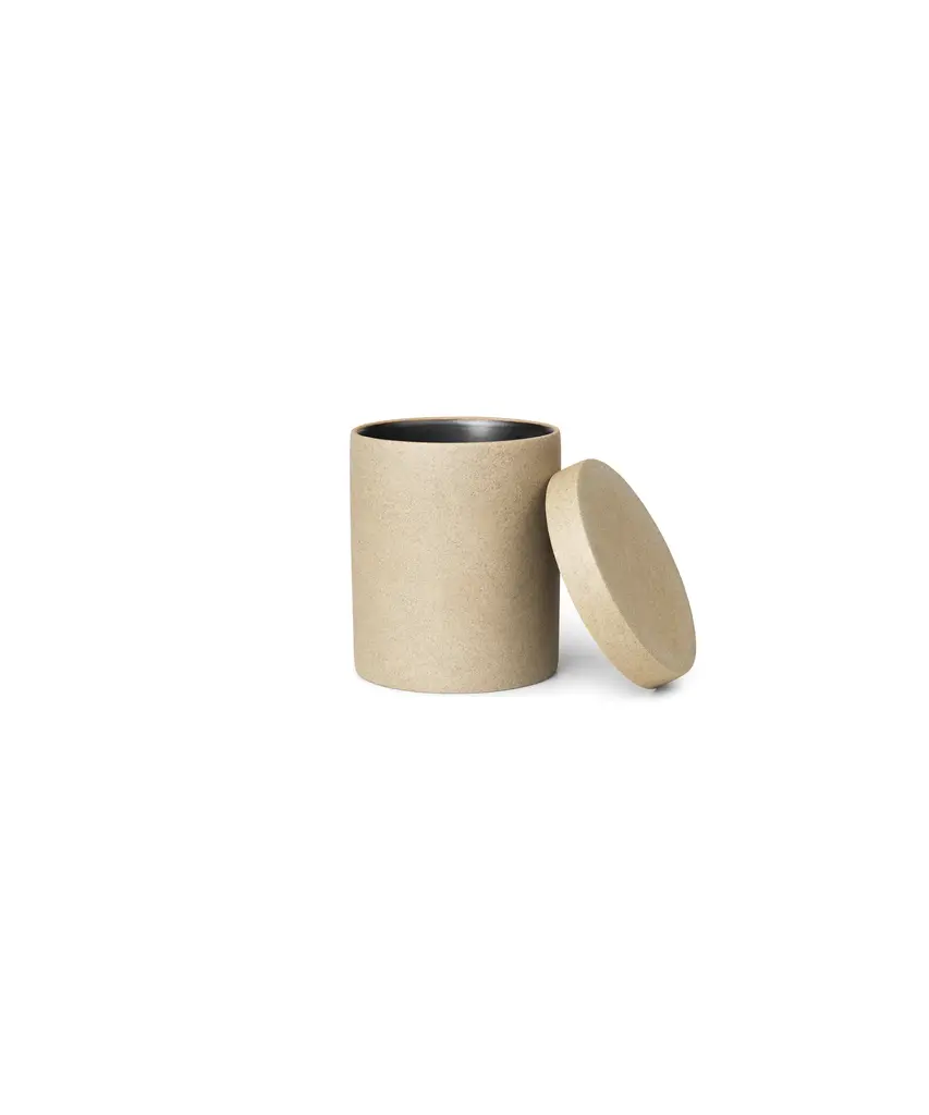 Part of the Bon series of containers inspired by Japanese minimalism, this small container is made from raw sand-colored porcelain. The Container works equally well alone on a dressing table, as it does on the bathroom shelf or a desk. Fill it with everything from cotton pads to paper clips. Designed and produced by the Copenhagen-based studio Ferm Living.