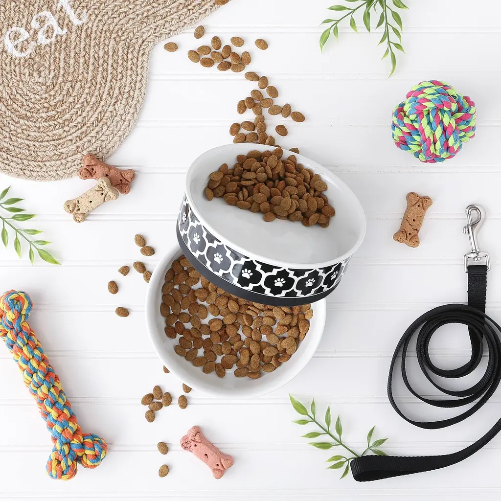 Bone Dry Lattice Pet Bowl (Set Of 2) - Black - Small Set, 4.25x2"