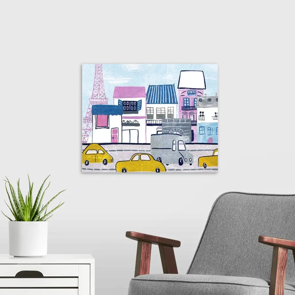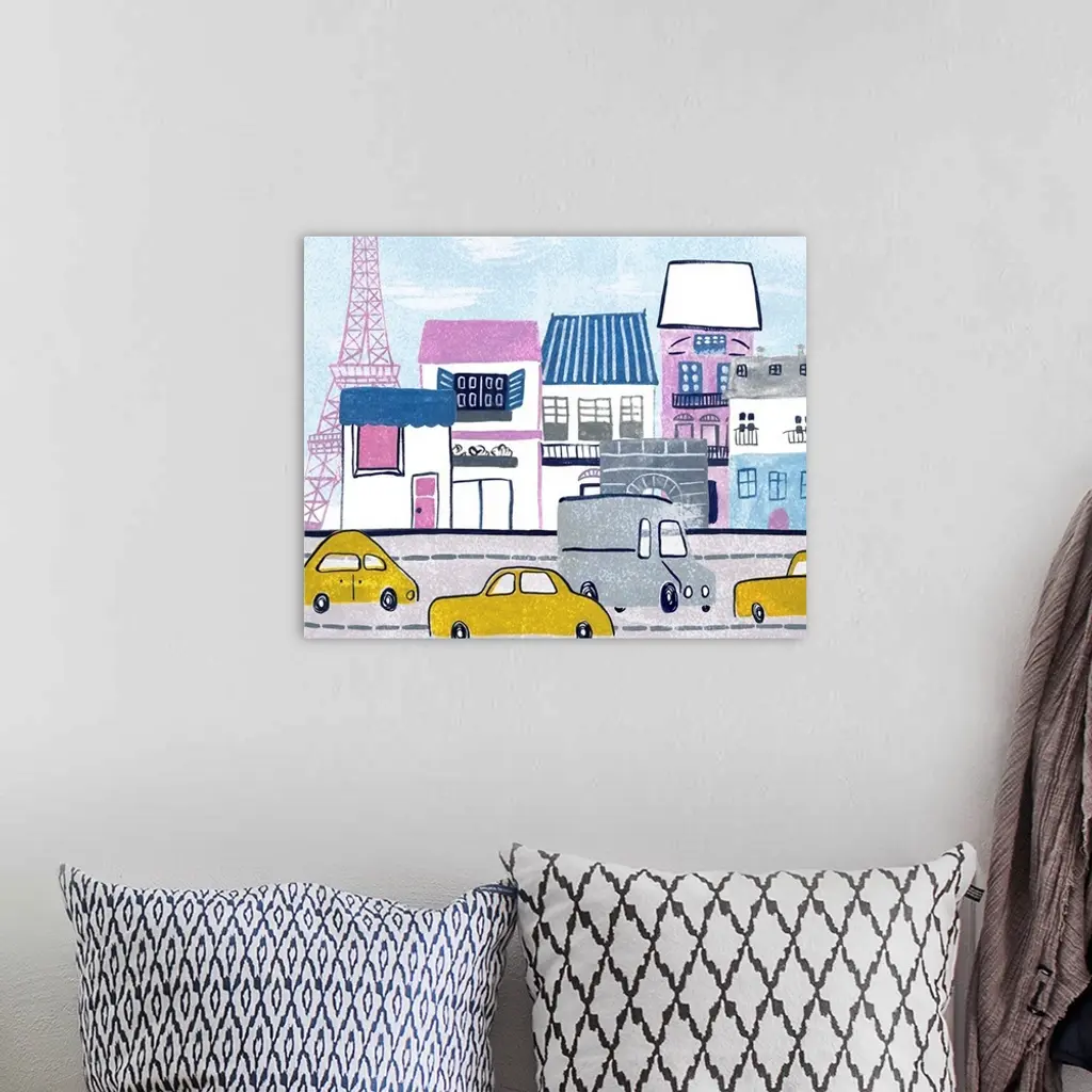 Bonjour Paris I wall art for home and office decor. Discover canvas art prints, photos, mural, big canvas art and framed wall art in GreatBigCanvas.com's varied collections.