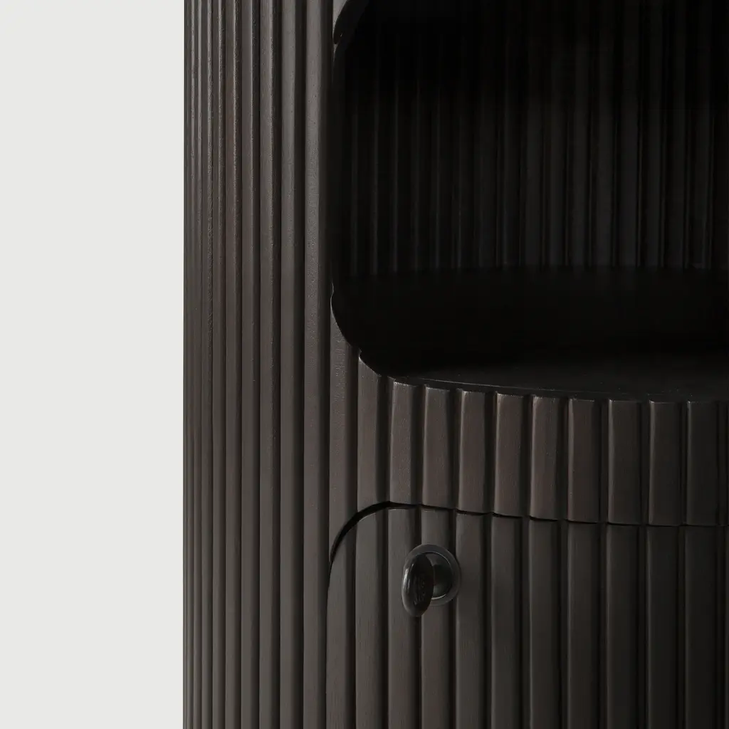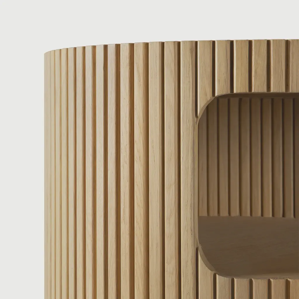 Indulge in the beauty and functionality of the Boomerang Drawer Unit from Ethnicraft. Inspired by shapes found in nature, this unit boasts a playful pebble top and elegant curved legs with a stacked wood effect. Hand-carved details add a touch of sophistication, while its wheels offer convenience and versatility. Use it as a desk companion or as a standalone statement piece. Highlights
