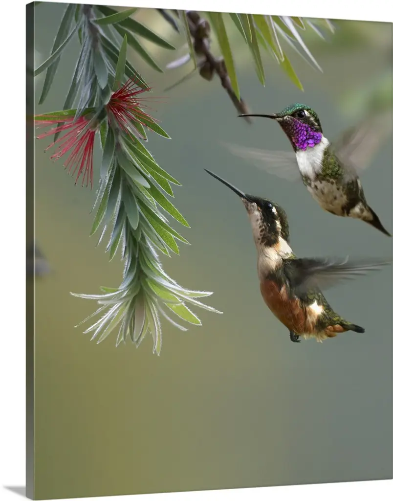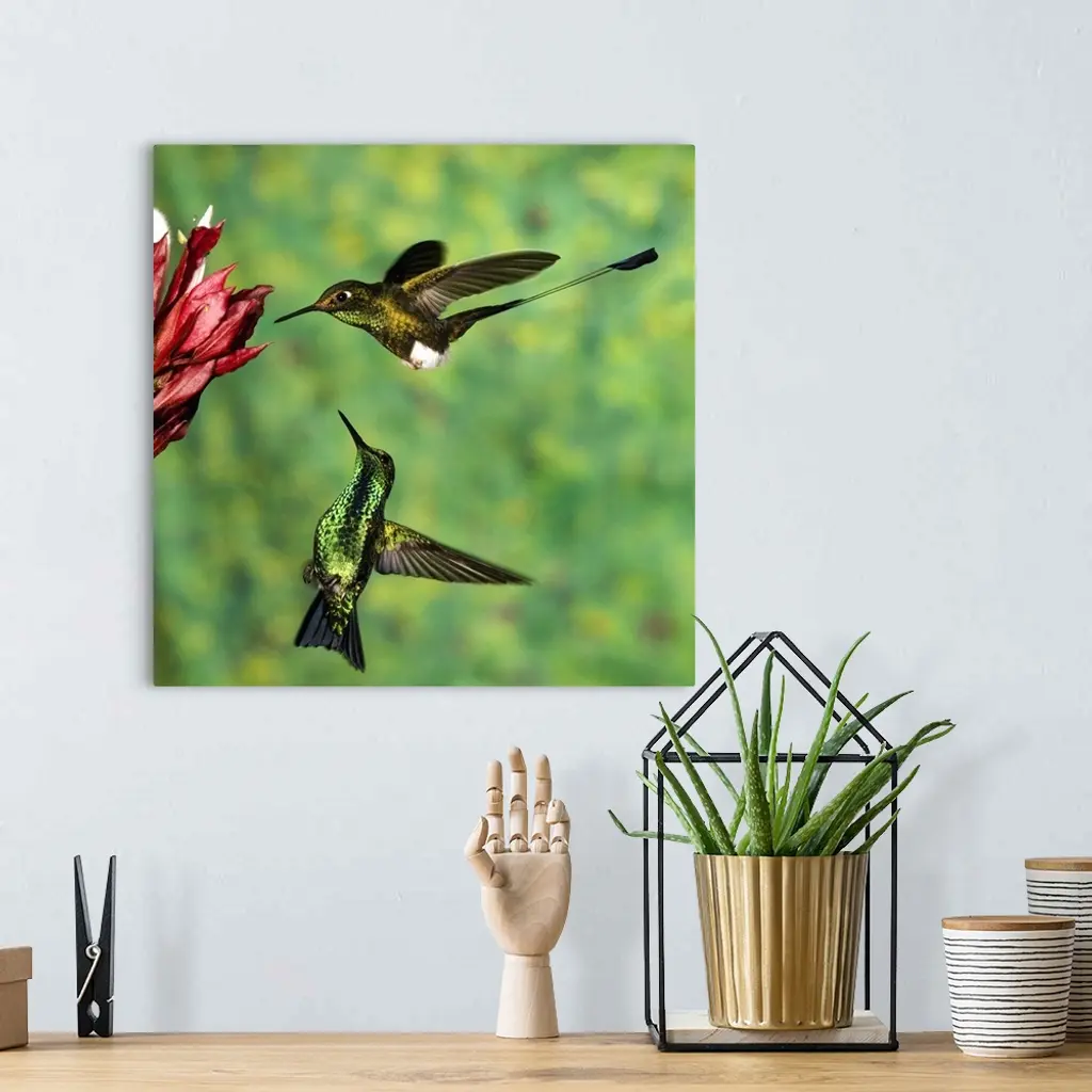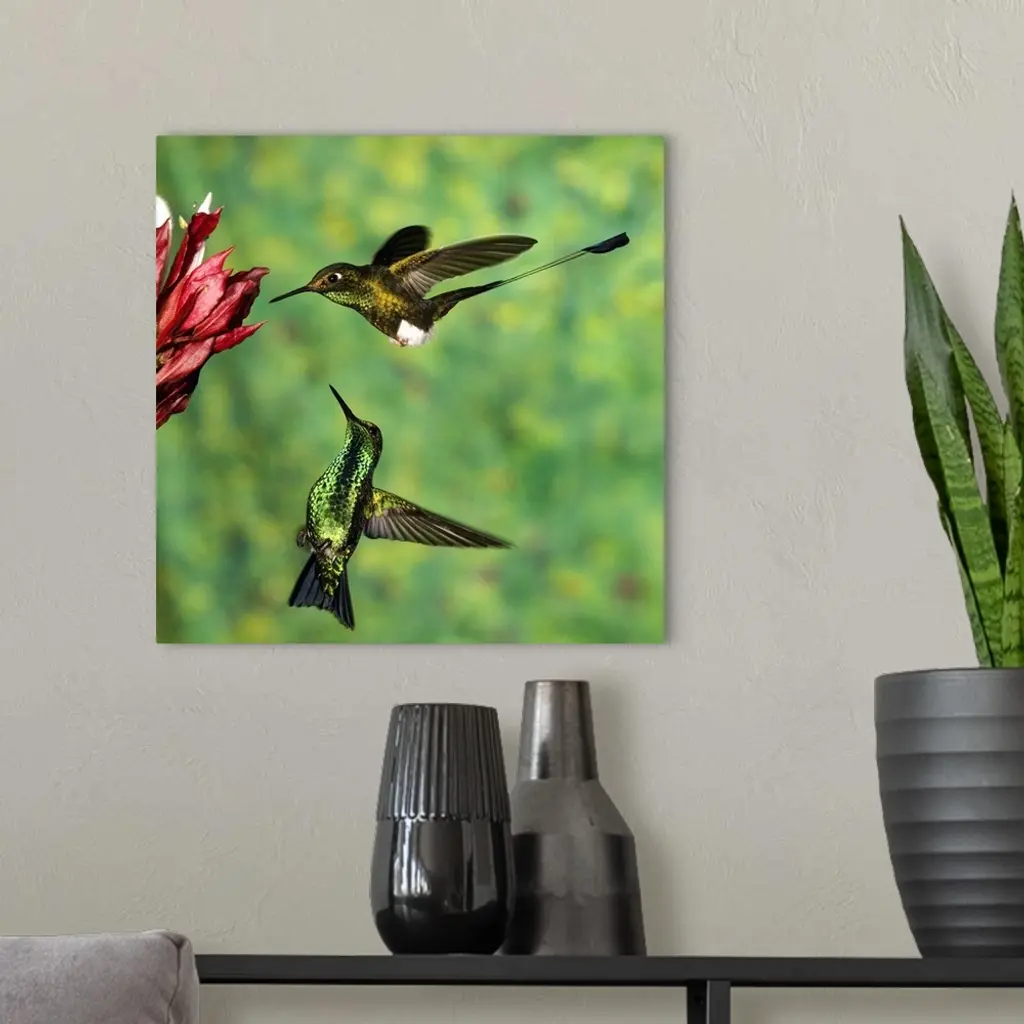Booted Racket-Tail Hummingbird And Western Emerald Hummingbird