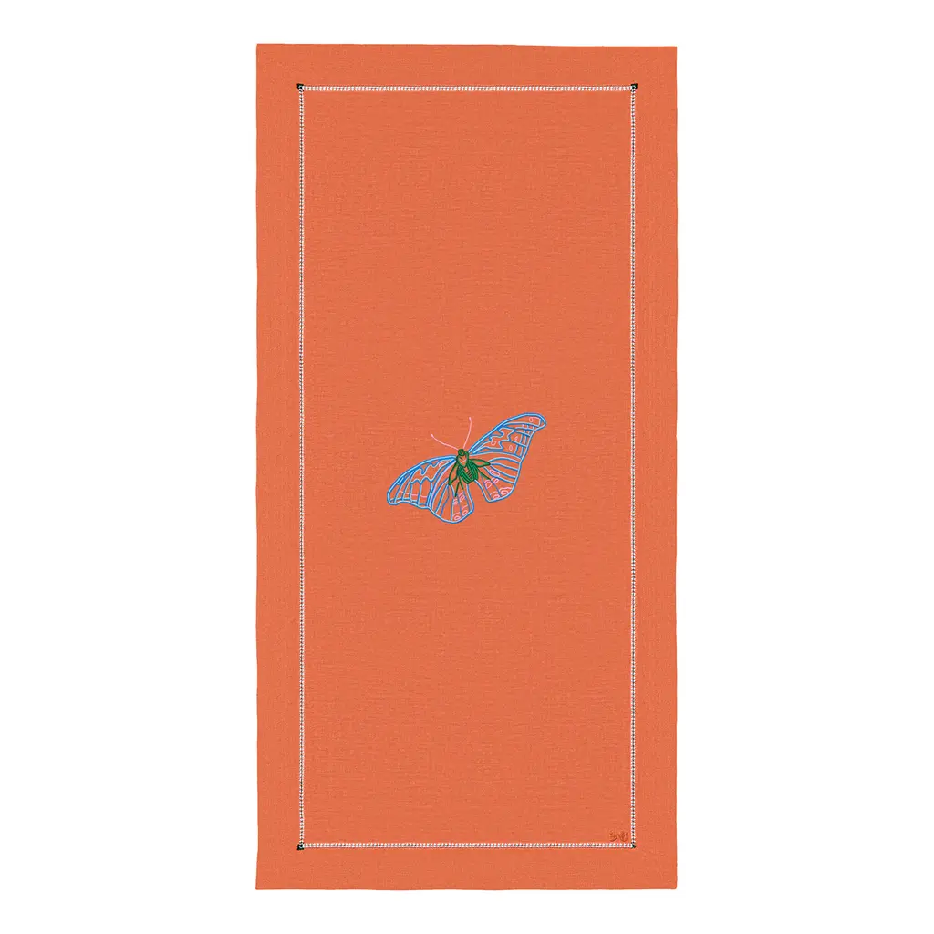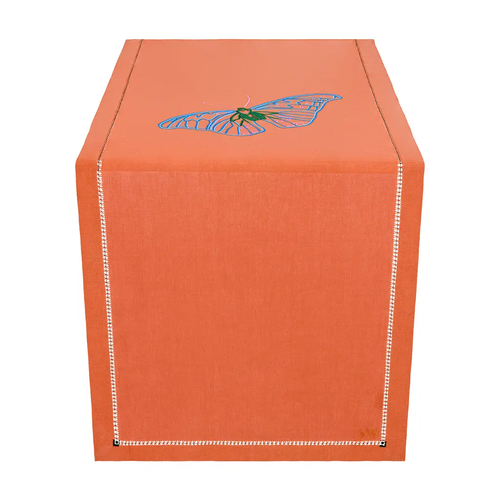 The beauty of a runner draws the eye to the centre of the table, which can be adorned with a centrepiece to create a striking statement. With each motif taking fourteen hours to complete, and each meter of open hem two hours to prepare, the artistry behind each design is significant. Place runners across the table to double up as placemats while also protecting the table from hot serving dishes.The magnificent forms and colours of butterflies have inspired artists for generations, with this collection reigniting our appreciation for their natural beauty. Through delicate needlework and soft hues, the magic of these dazzling creatures brings any table to life.