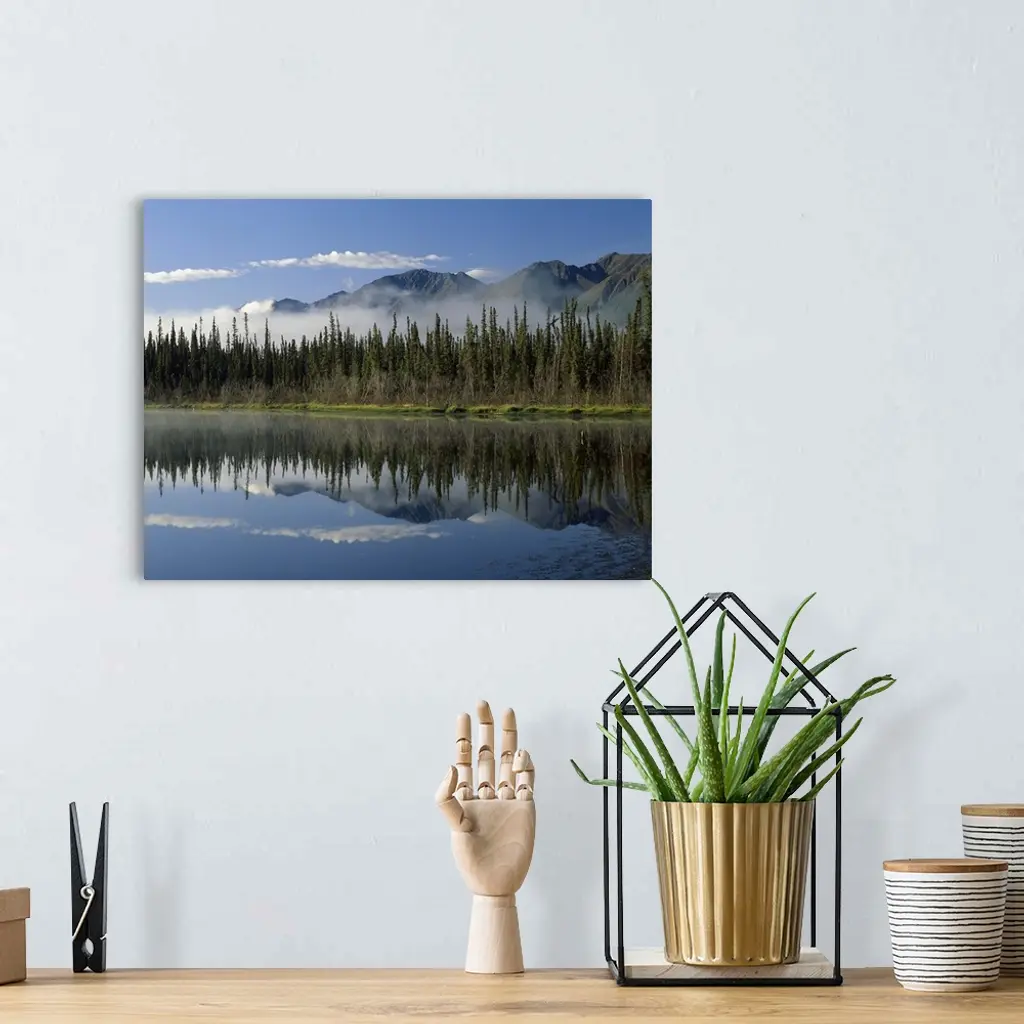 Boreal forest along lake edge, Nutzotin Mountains, Alaska wall art for home and office decor. Discover canvas art prints, photos, mural, big canvas art and framed wall art in GreatBigCanvas.com's varied collections.