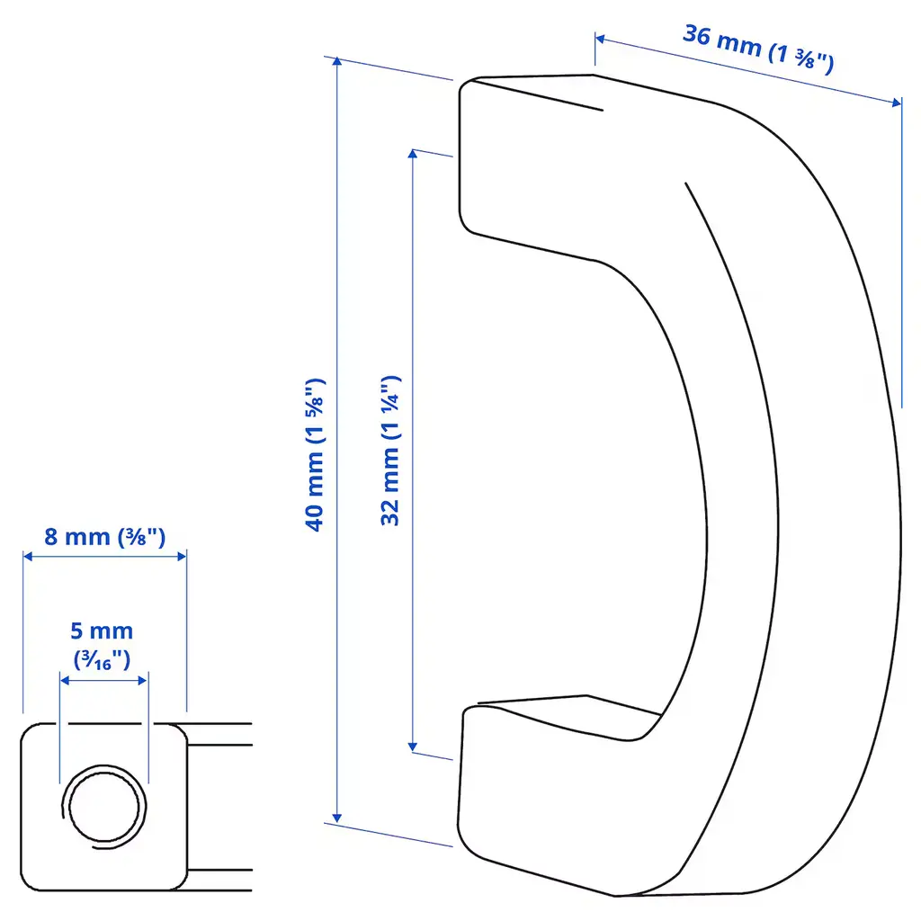 BORGHAMN Handle 1 9/16 ". The handle has a rustic, handcrafted look as it is forged from a solid iron rod and not molded. The handle feels handcrafted when you touch it because the surface is textured. Screws included.