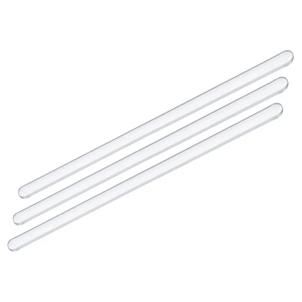 What is this?The Borosilicate Glass Sticks are widely used in laboratories or kitchens to stir liquids such as chemicals, acids, alkali, water, etc, with good acid and alkali resistance, also good resistance to high temperature.What will I get?Material: Borosilicate Glass; Color: Clear; Total Size: 150 x 6mm/5.91 x 0.24 inch(L*D); In the package of: 3 x Stir RodAre there any advantages of the product?The stick is made from borosilicate glass, good resistance to acid, alkali and high temperature, and its strength are higher than ordinary glass.Round on both ends for preventing your containers from scratches, and the smooth surface brings you a comfortable grip.How to use it?The stirring rod is reusable and washable, please wash and dry it after use for next time use. What should I notice?Please check the size carefully before ordering it!