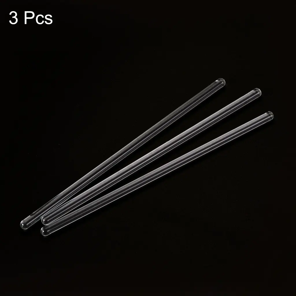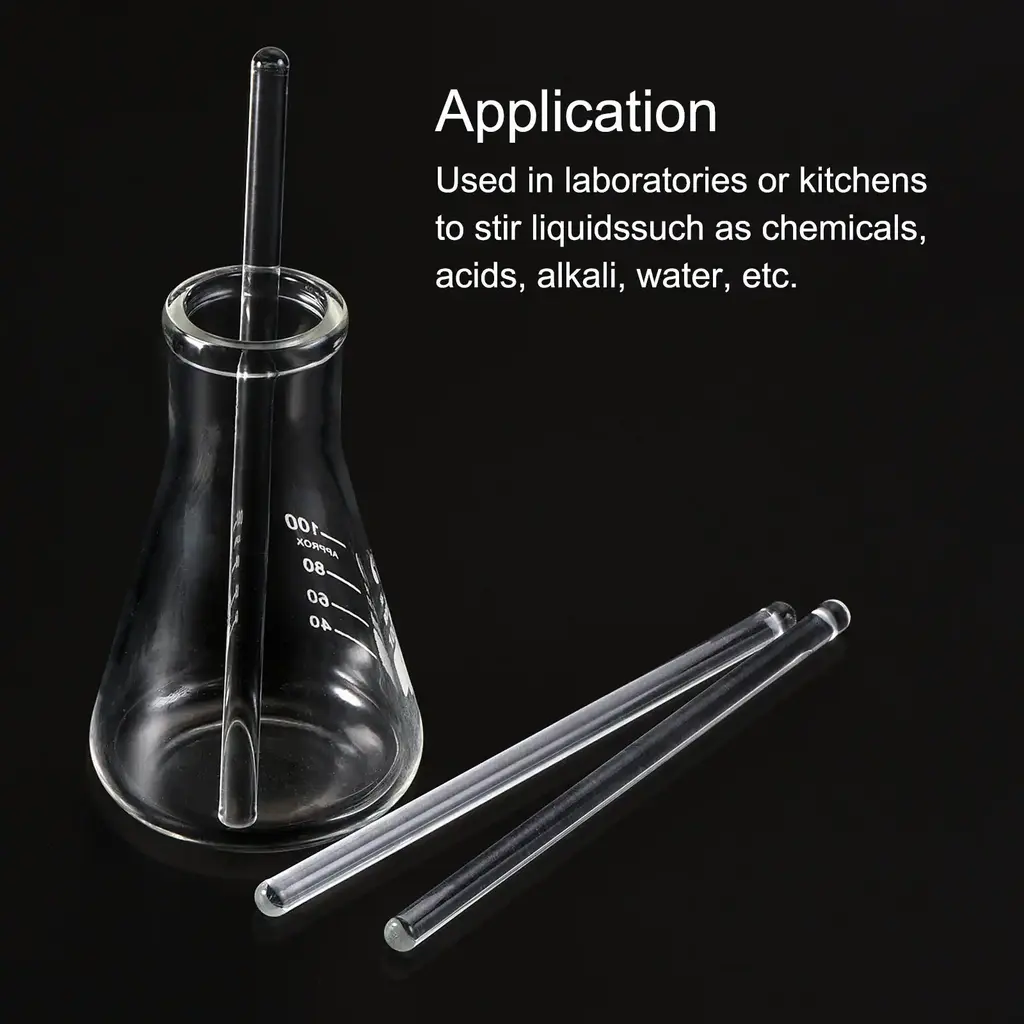 What is this?The Borosilicate Glass Sticks are widely used in laboratories or kitchens to stir liquids such as chemicals, acids, alkali, water, etc, with good acid and alkali resistance, also good resistance to high temperature.What will I get?Material: Borosilicate Glass; Color: Clear; Total Size: 150 x 6mm/5.91 x 0.24 inch(L*D); In the package of: 3 x Stir RodAre there any advantages of the product?The stick is made from borosilicate glass, good resistance to acid, alkali and high temperature, and its strength are higher than ordinary glass.Round on both ends for preventing your containers from scratches, and the smooth surface brings you a comfortable grip.How to use it?The stirring rod is reusable and washable, please wash and dry it after use for next time use. What should I notice?Please check the size carefully before ordering it!