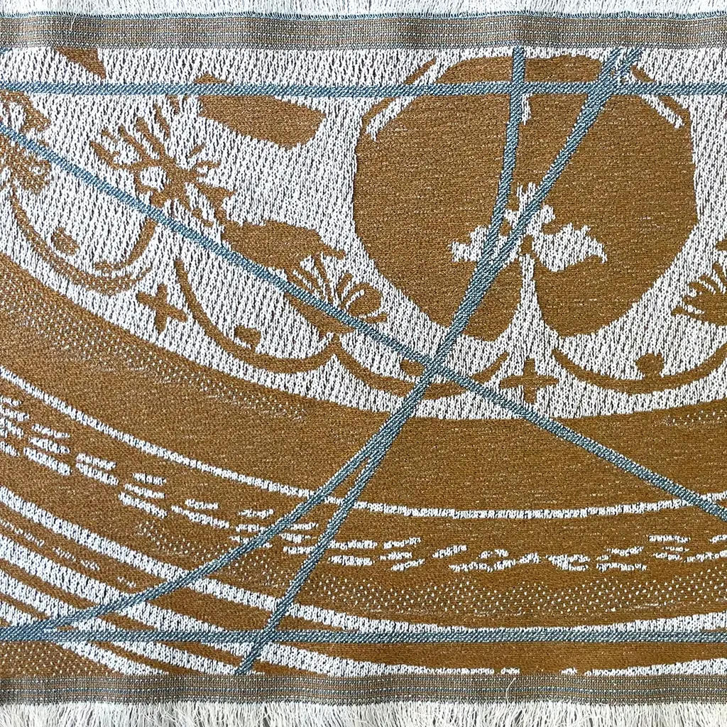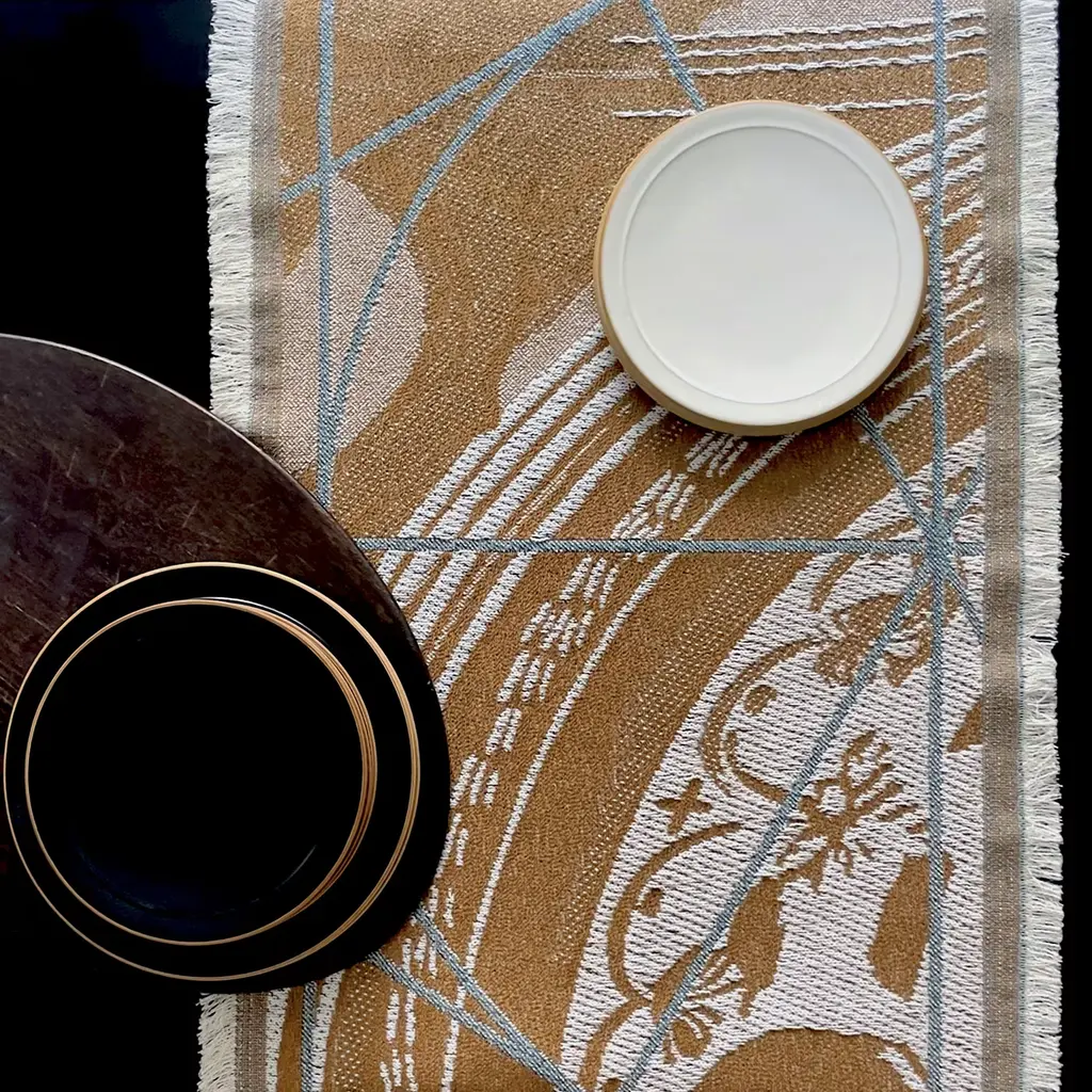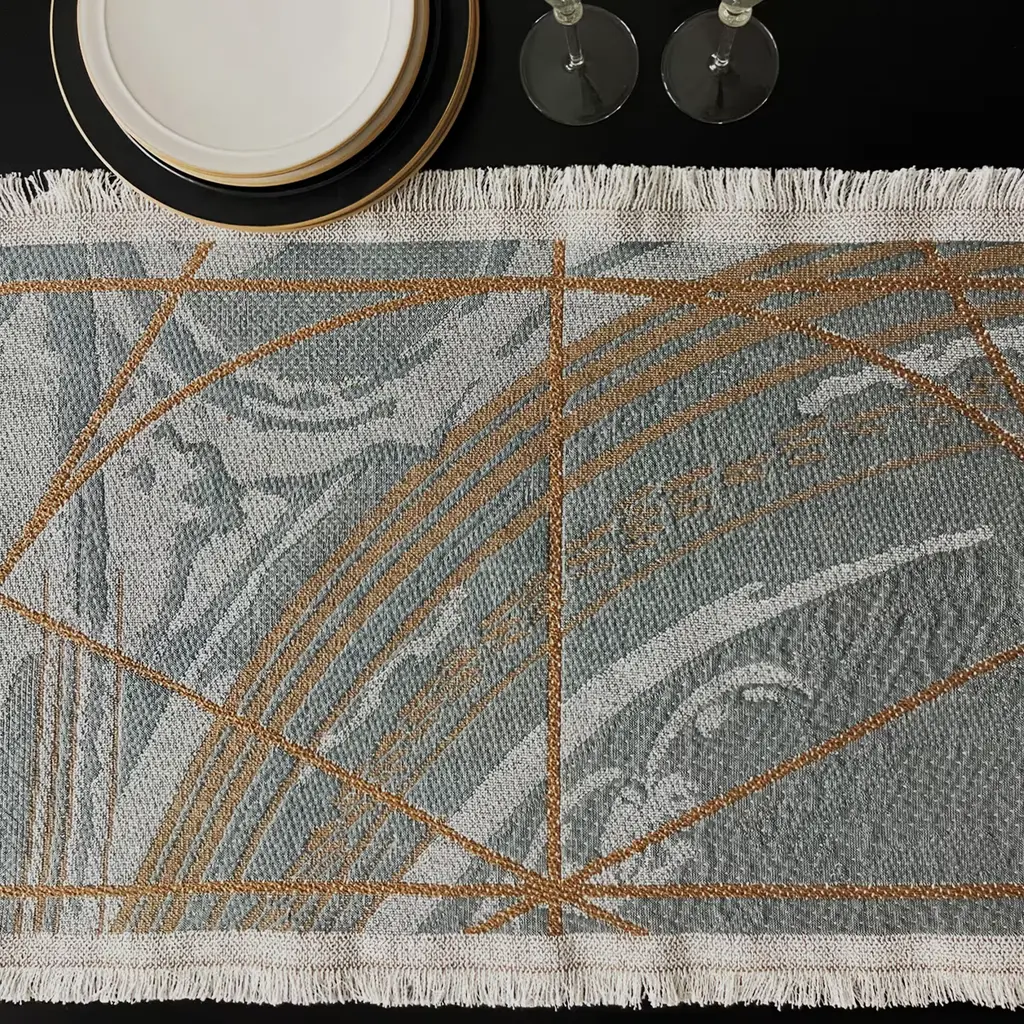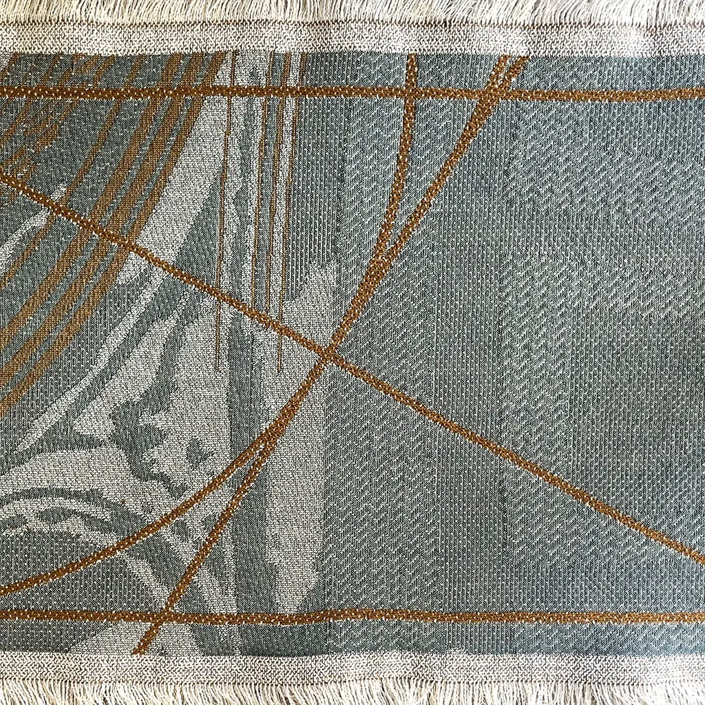 Elevate your dining experience with the Borromi double-sided runner. This exquisite runner is crafted from the same luxurious fabric as the "Borromini" tapestry, utilizing a Jacquard weaving technique that incorporates a delicate blend of linen, cotton, and fine wool fibers. Inspired by the iconic dome of San Carlo alle Quattro Fontane, designed by the great architect Borromini in 1640, this runner features a captivating design that brings rich colors and striking contrasts to your table setting. The double-faced weaving technique allows for versatile use, showcasing a creamy white latte warp with a mocha mousse weft, elegantly complemented by geometric accents in blue and green alga. Measuring 145 cm x 50 cm, this runner is perfect for adorning tables, containers, consoles, mirrors, sofas, or upholstered pieces. The Mocha Mousse shade, selected as the Pantone Color of the Year 2025, imparts a sense of contemporary sophistication. Each piece is uniquely crafted, embodying Italian cultural heritage and exceptional artisan skill. Additional color options are available, contact the Concierge for further information.