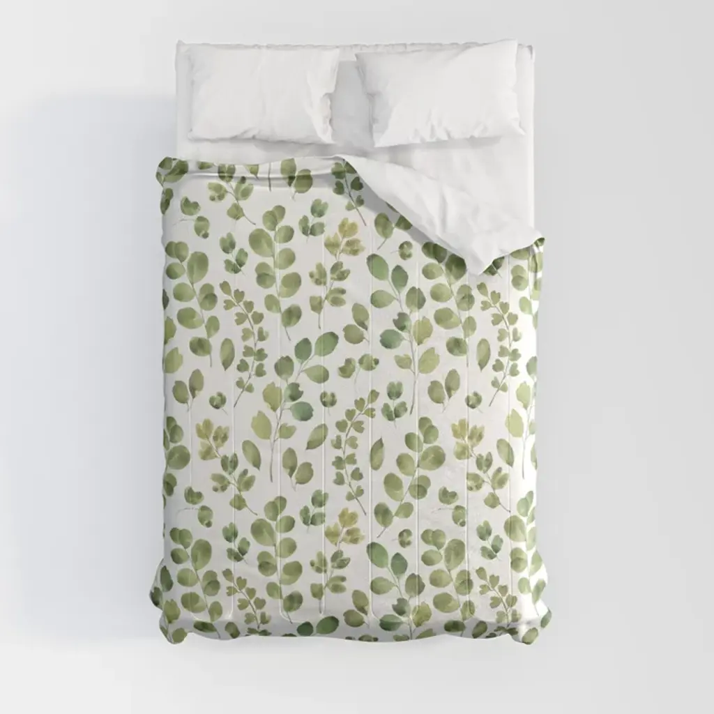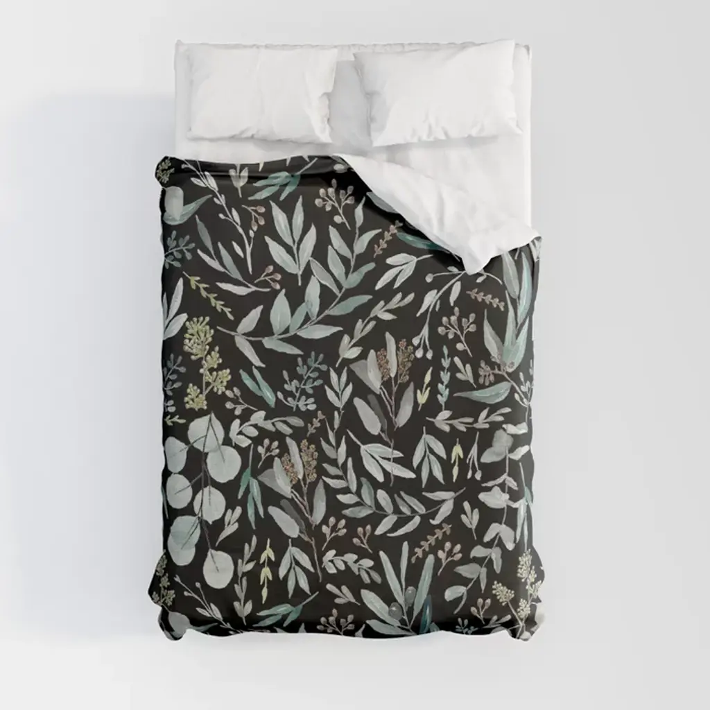 Botanical Eucalyptus Leaves Pattern Duvet Cover