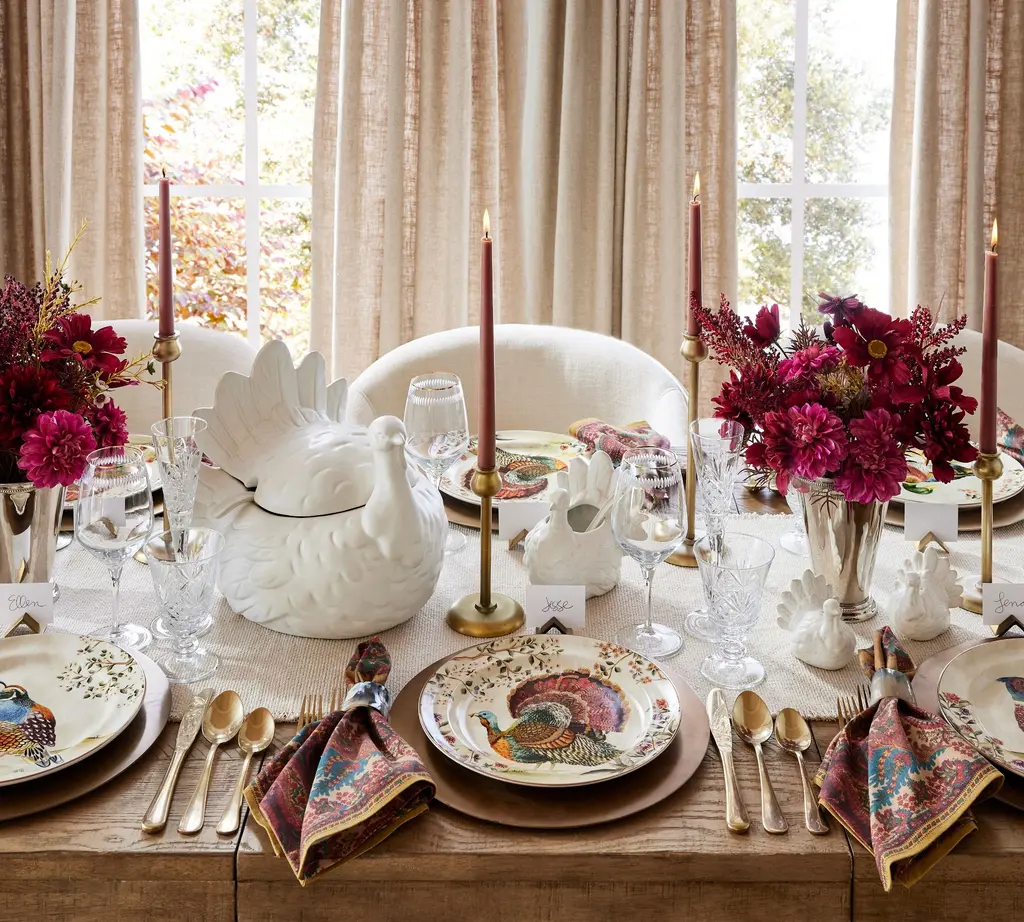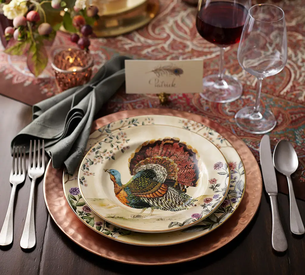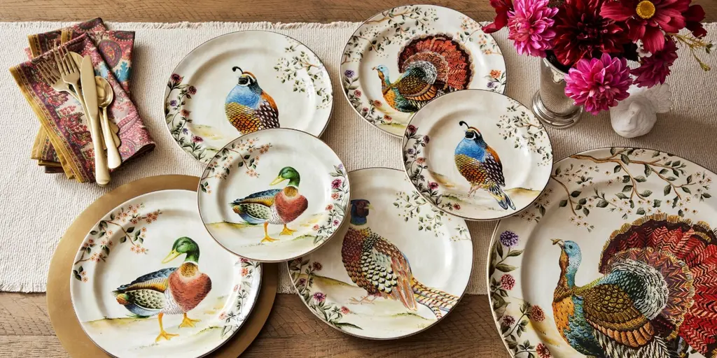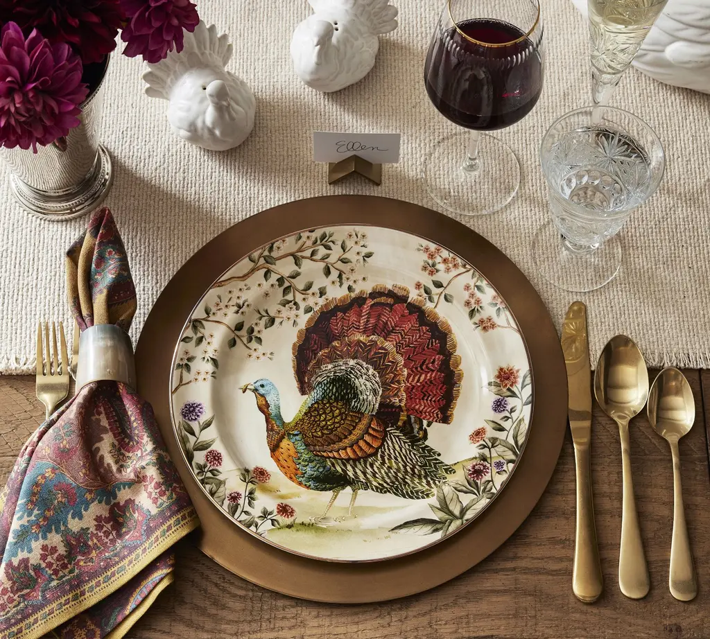 This autumnal stoneware is as beautiful as the fowl that inspired them. The original design is painted in our own studio, where a vivid blend of colors come together in realistic detail. A gold rim finishes the look for an elevated feel. Even better, it’s dishwasher safe and designed to last. Complete your seasonal table with the set.