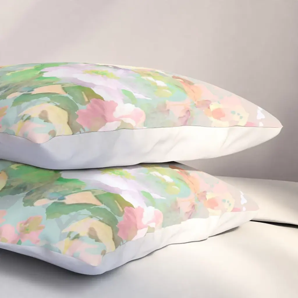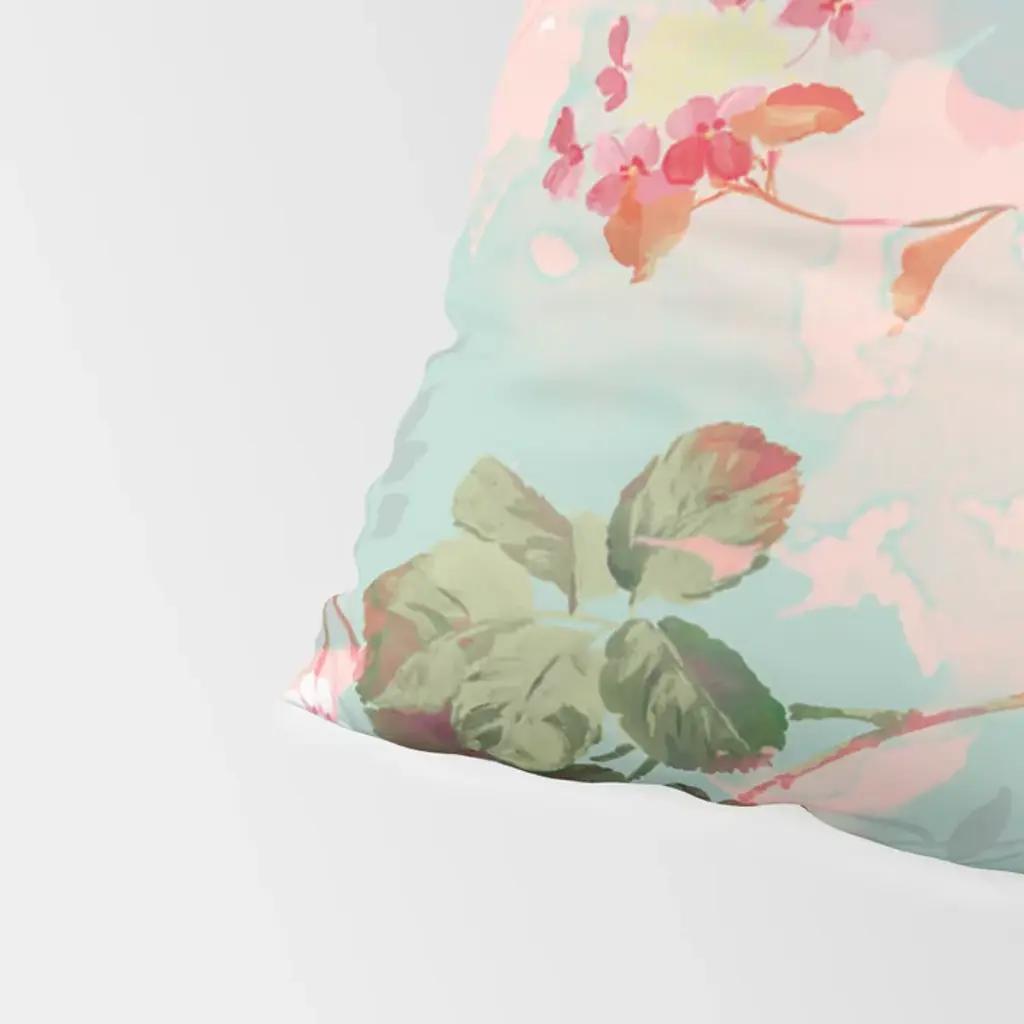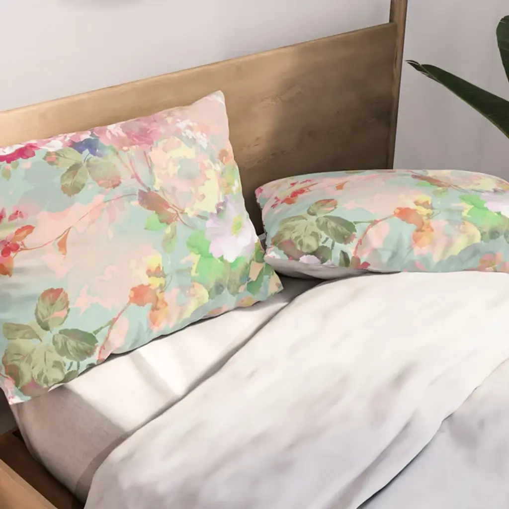Botanical Neo Mint Pink Abstract Watercolor Floral Pattern Pillow Sham