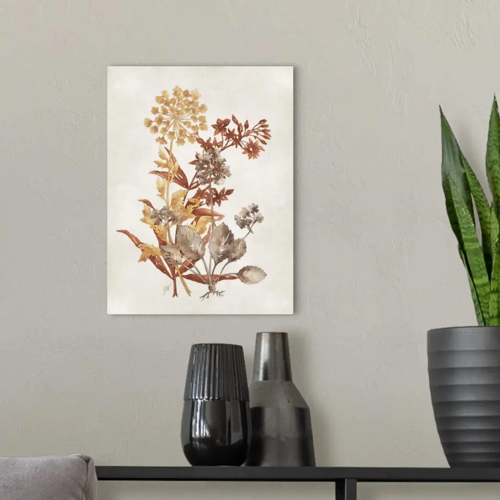 Gold, dark bronze, and light bronze flowers form a striking trio.