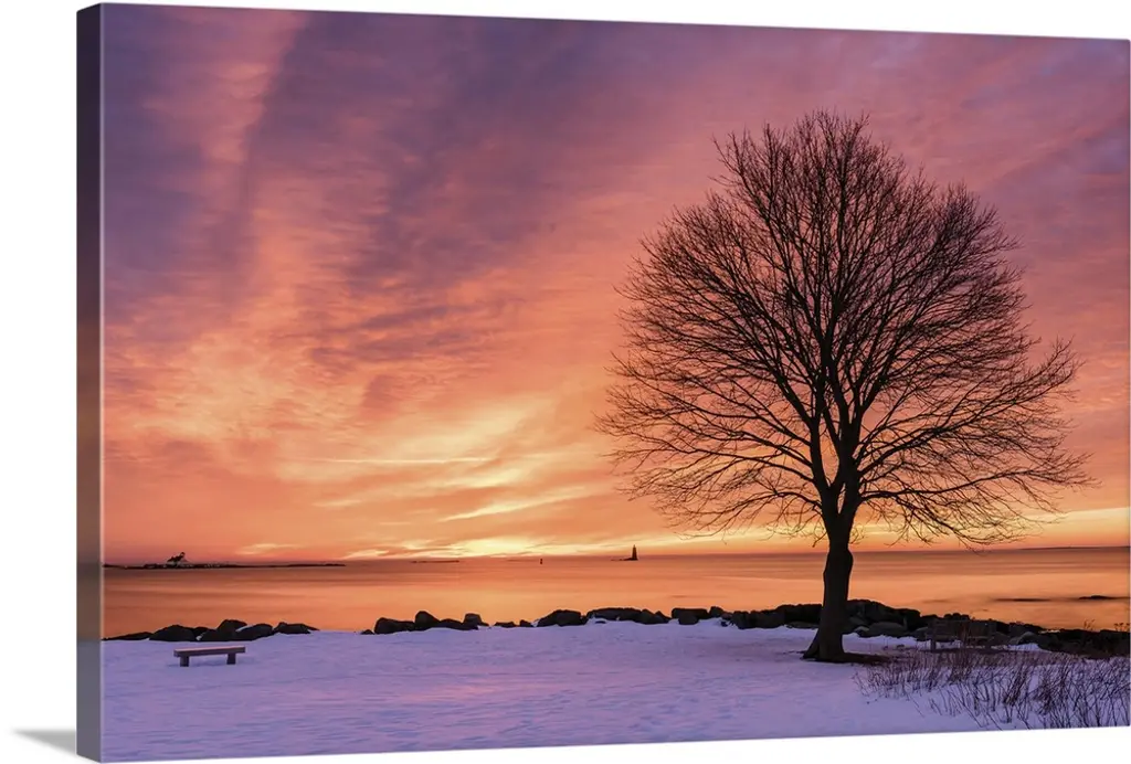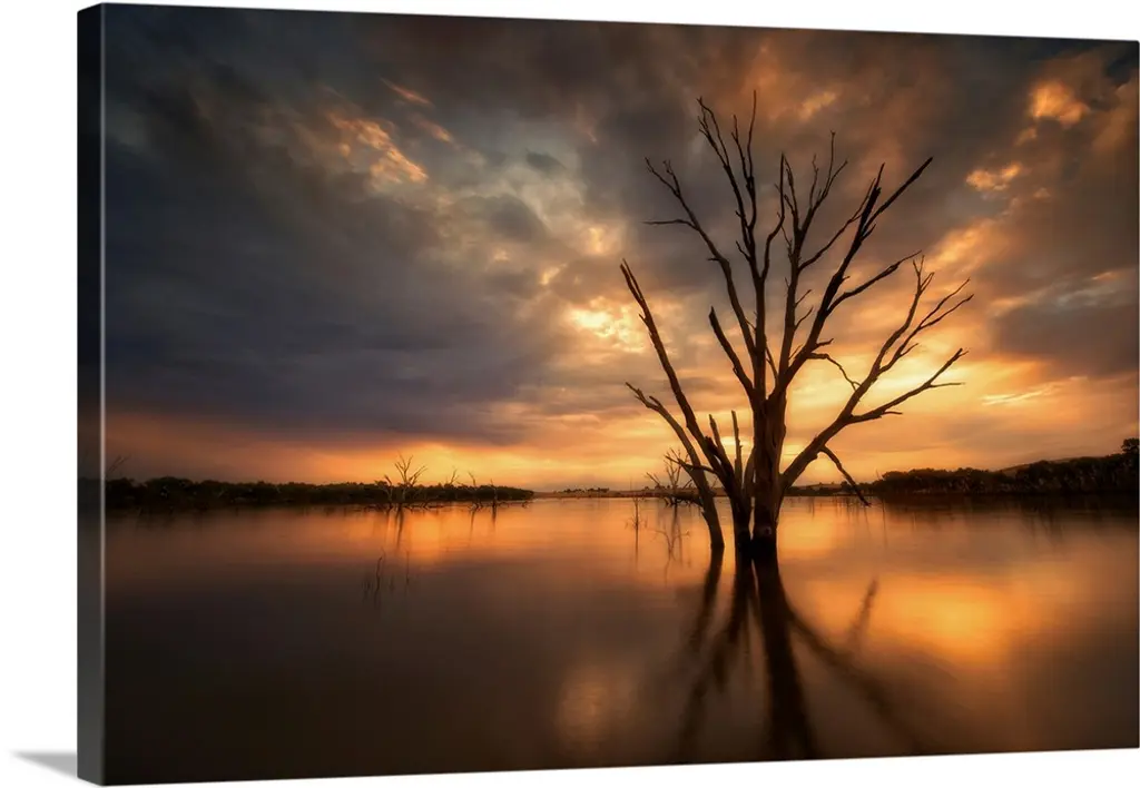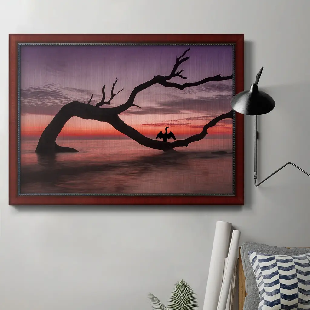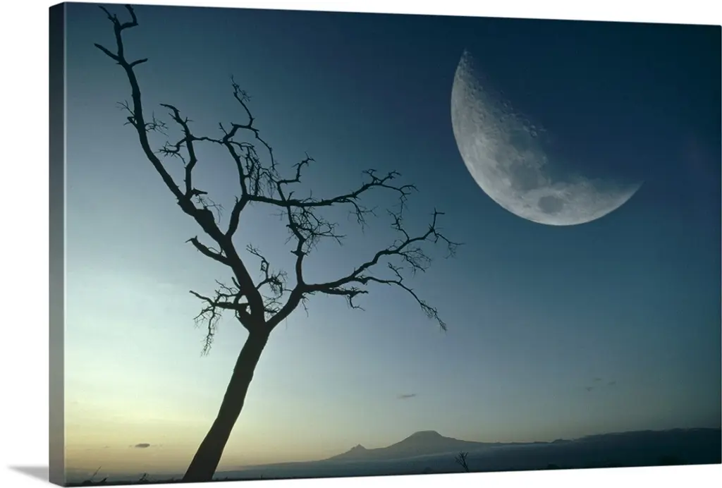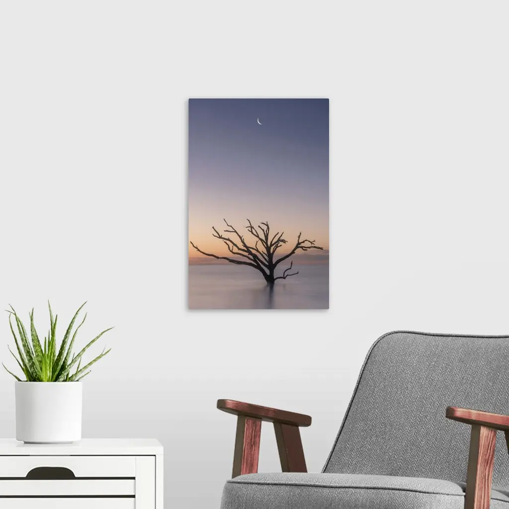 A tree growing in the water off the coast of Botany Bay, South Carolina, under the moon in the early evening.