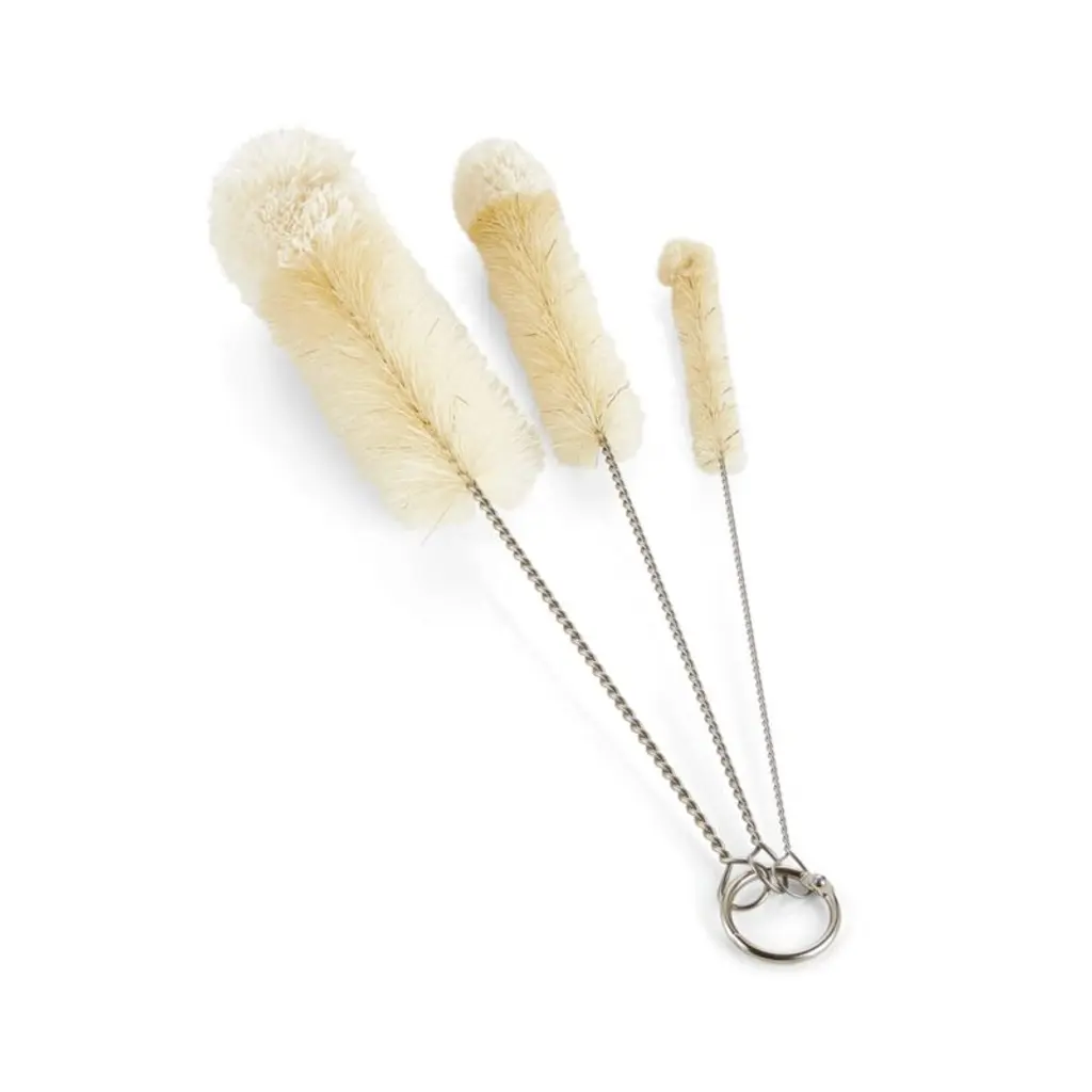 These thoughtfully designed brushes in three sizes combine rugged pig bristles and soft wool to both swab and scrub deep inside bottles and other narrow-necked containers such as champagne flutes, cruets, and bud vases. Handles are stainless steel wire with a connecting ring.