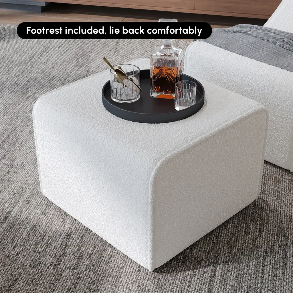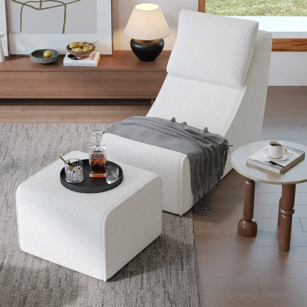 Sink into cozy comfort with this 2-piece lounge chair and ottoman set. Upholstered in soft bouclé fabric and crafted with durable compressed foam technology, it offers lasting support and a chic modern look, perfect for reading, relaxing, or sipping your favorite drink.