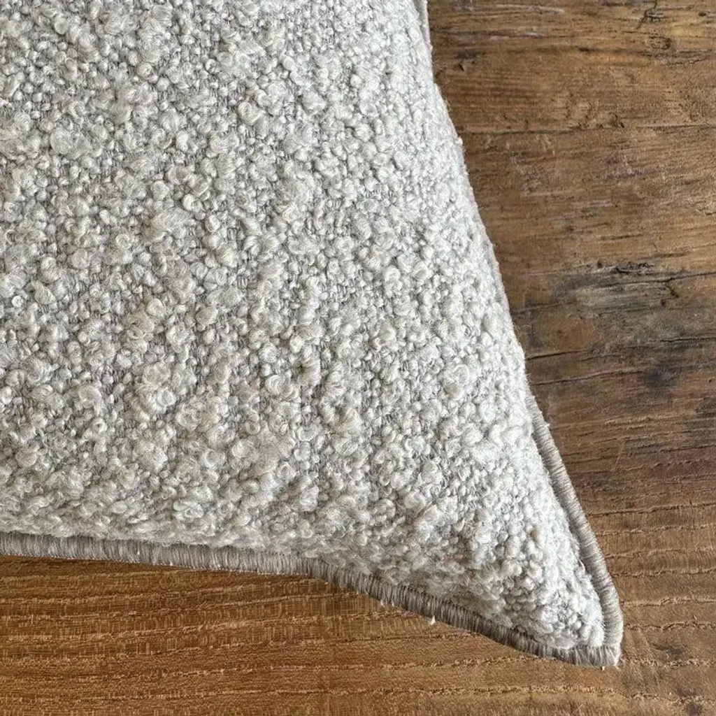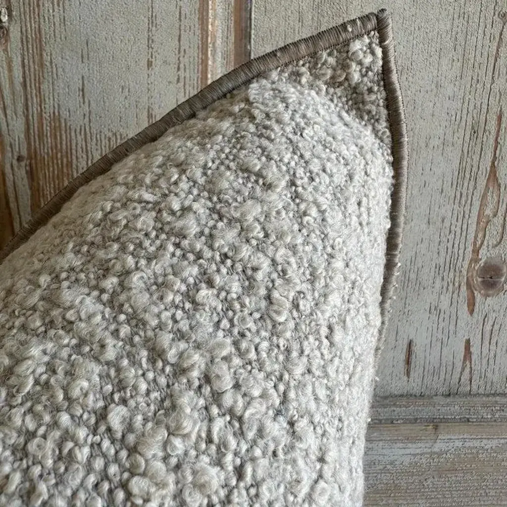 Woven in France using traditional weaving techniques, Wooly features a soft boucle yarn on cotton warp. Color: Natural (oatmeal color) Zipper closure. Extremely soft hand. Stock available usually, check with us for current availability. Pillows are sewn to order, please allow 2-3 weeks for your pillow to be sewn before shipping. Content: Wool 32% Acrylic 31% Cotton 28% Polyester 9%. Size: 20″ x 20″ Includes Down Feather Insert