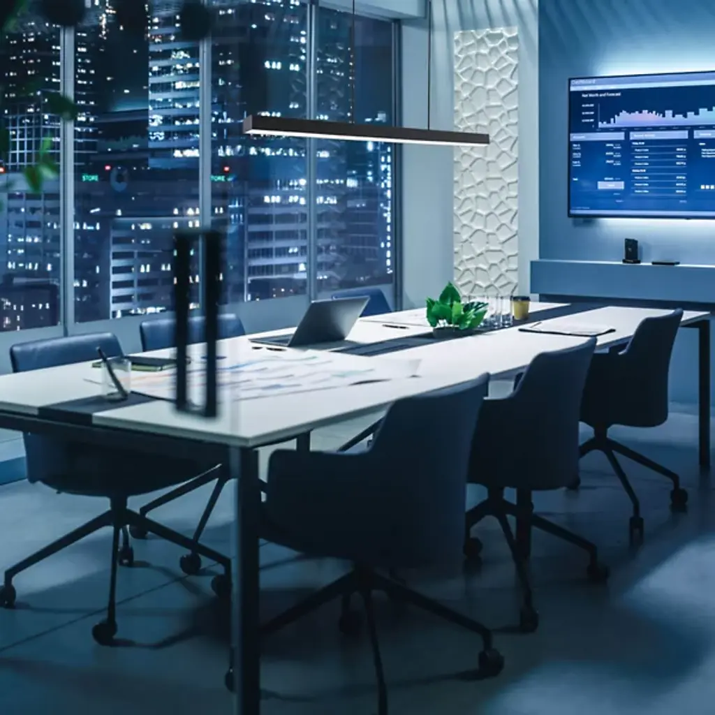 The Boulevard Smart LED Linear Suspention from DALS Lighting embodies a streamlined, ultra-modern design. Illuminate your space with sophistication as the integrated LED emanates overhead light, creating a warm and inviting ambiance. This linear suspension includes a junction box with an integrated driver for easy installation and a refined aesthetic. Tailor your lighting experience with selectable color temperatures. Your linear suspension is crafted from premium aluminum for durability. Plus, Boulevard features convenient Bluetooth mesh technology.