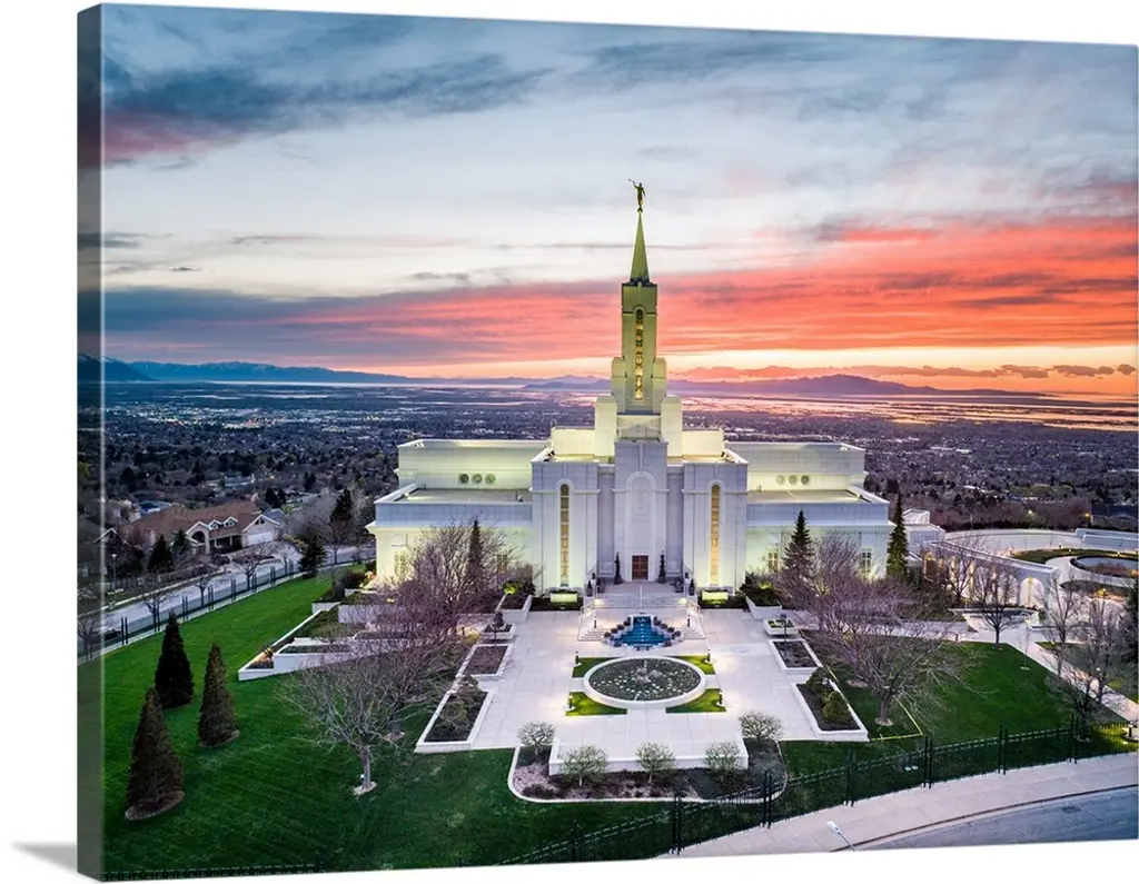 The Bountiful Utah Temple is one of the most astonishing temples in the United States. It's considerably larger than other temples and because of it's location in the foothills of Bountiful, it offers an incredible view that allows visitors to see all the way to Great Salt Lake. The ornate design of the temple includes columned atriums, arches, and even a cascading water feature. In 2016 lightning struck a statue of the angel Moroni on top of the temple causing it to be replaced later in the year.