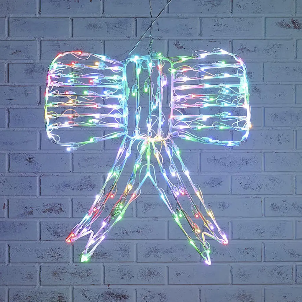 Enjoy your own holiday light show from the comfort of home. Our Dynamic RGBWW Bow Lighted Display features a rainbow of remote-controlled LED lights that can be set to flash, fade, chase, wave and more. The powdercoated iron frame and UL-rated cord will withstand the elements year after year. Powdercoated iron frame Red, blue, green, purple, pure white, yellow, teal and multicolored LED lights Light settings include jump, fade, flash, chase, steady, flash out, auto and wave 8 ft. white cord Includes remote control (requires CR2025 batteries; batteries not included) Includes adapter For indoor or outdoor use At Frontgate, our primary focus is quality. We guarantee that every product we sell will stand up to the supreme test – our customers' satisfaction. To learn more about our policies, visit our Shipping & Processing, Returns & Exchanges and Warranty & Price Guarantee pages.