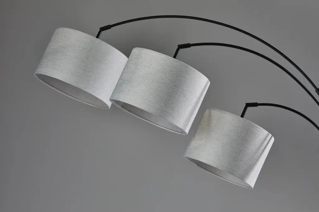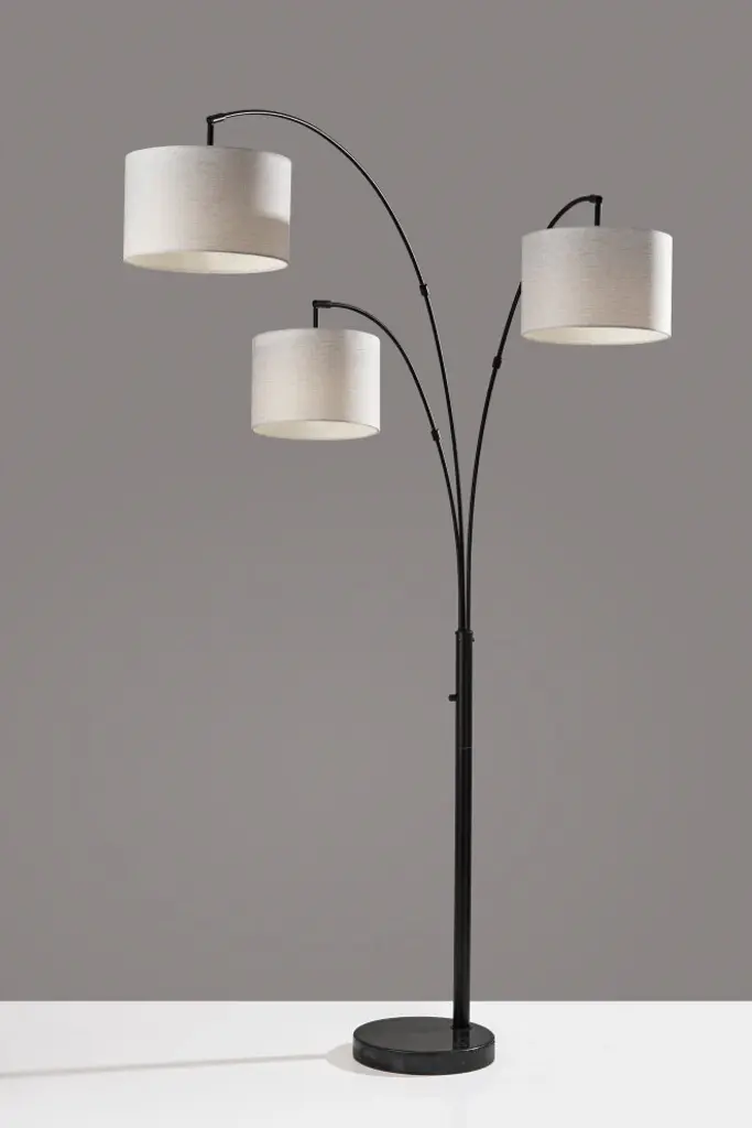 A smart and stylish way to light up a seating area, the Bowery 3-Arm Arc Lamp provides overhead lighting that can be controlled with three adjustable shade arms. Aside from functional assets, an black finish is paired with a black marble base to display striking style. Three 60 Watt bulbs shines beautifully through taupe textured fabric shades. This unique mix of materials creates a beautiful, classy look adding modern farmhouse vibes to any home. A rotary switch located on the pole controls the light at 4 settings: 1 light on, 2 lights on, 3 lights on, off. This allows for multiple brightness settings to satisfy all lighting needs. ETL TestedDry RatedUses: 3 x 60W Type A (not included)4-Way: 1 light on, 2 lights on, 3 lights on, off Rotary Switch on Tube